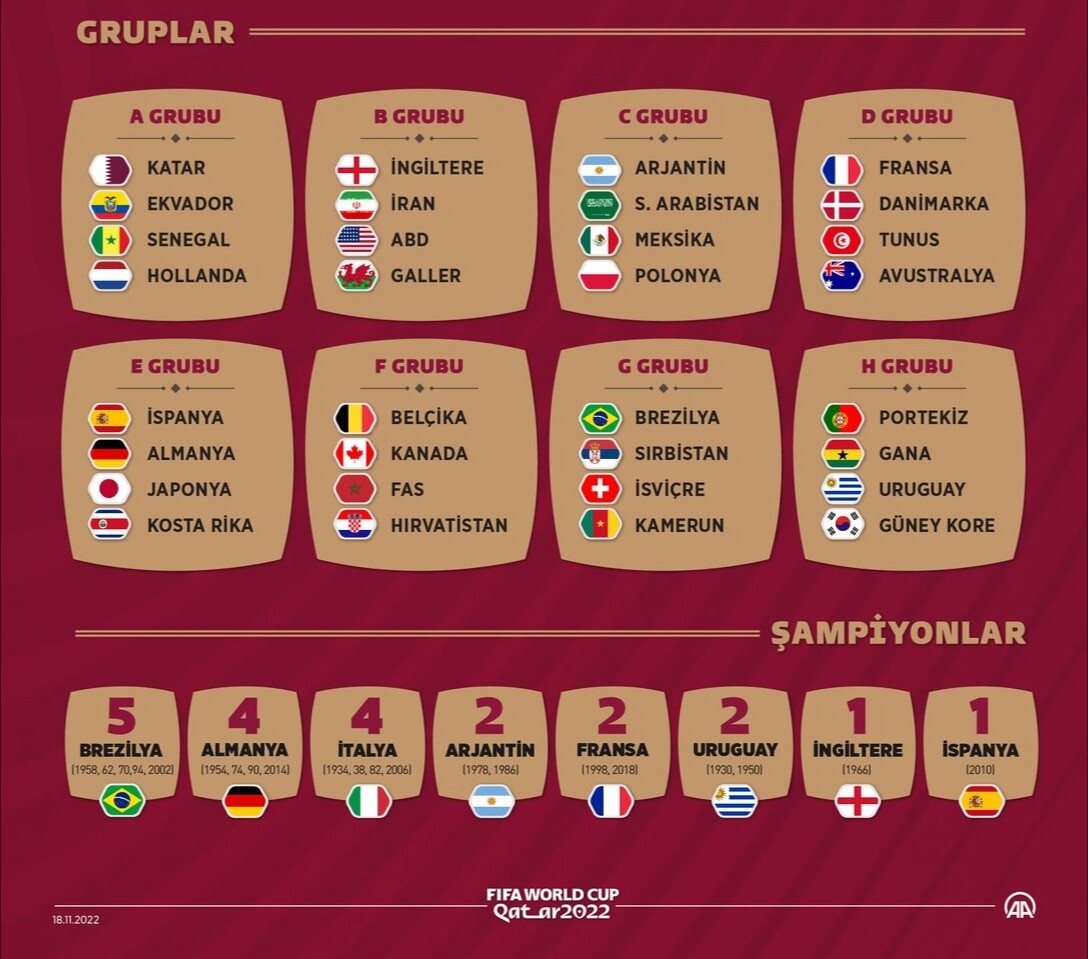 Dünya kupası tarihinin en şaibeli, en hak yenen turnuvasına geldiiiiik. Ölen onca insan, sırf turnuva Katar’a verilsin diye dönen şikeler, bu şikeleri yapanların (24 kişi) ihraç edilmelerine hala turnuvanın yapılması… Yazacak çok şey var da Pazar günü başlıyoruz her şeye rağmen;