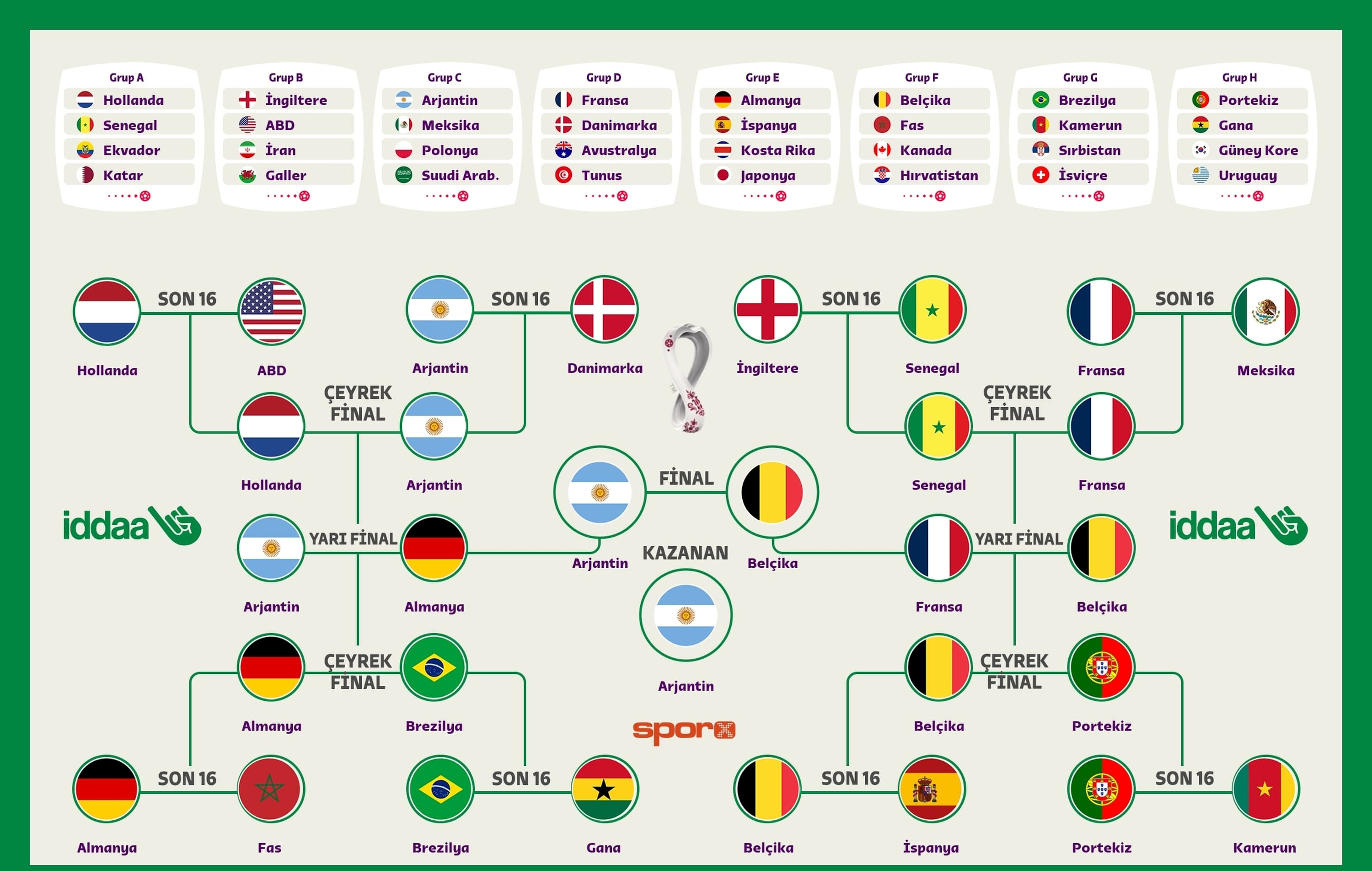 Suudi Arabistan - Tunus finali güzel olurdu. Fransa alabilir. ( Çocukluktan beri Hollanda’ya sempatim var.)