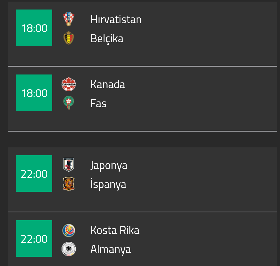 Ben İspanya Almanya son 16 diye tahmin ediyorum ama ben böyle yazdım diye Japonya ve Kosta Rika kazanıp gruptan çıkarsa şaşırmam. ![]()