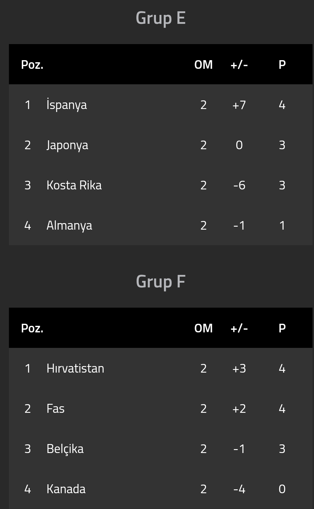 F grubunda Kanada’nın şansı kalmamıştı. Diğer 3 takımın da çıkmak için şansı var. Tahminim Fas Kanada’yı yener, Hırvatistan-Belçika berabere biter, Fas 1., Hırvatistan 2. olur