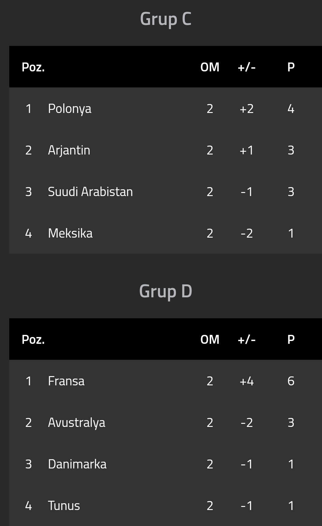 Polonya-Arjantin maçı berabere biter, Meksika S. Arabistan’ı yener, Polonya 1. olur, Arjantin de averajla 2. olur ve son 16’da Fransa ile eşleşir