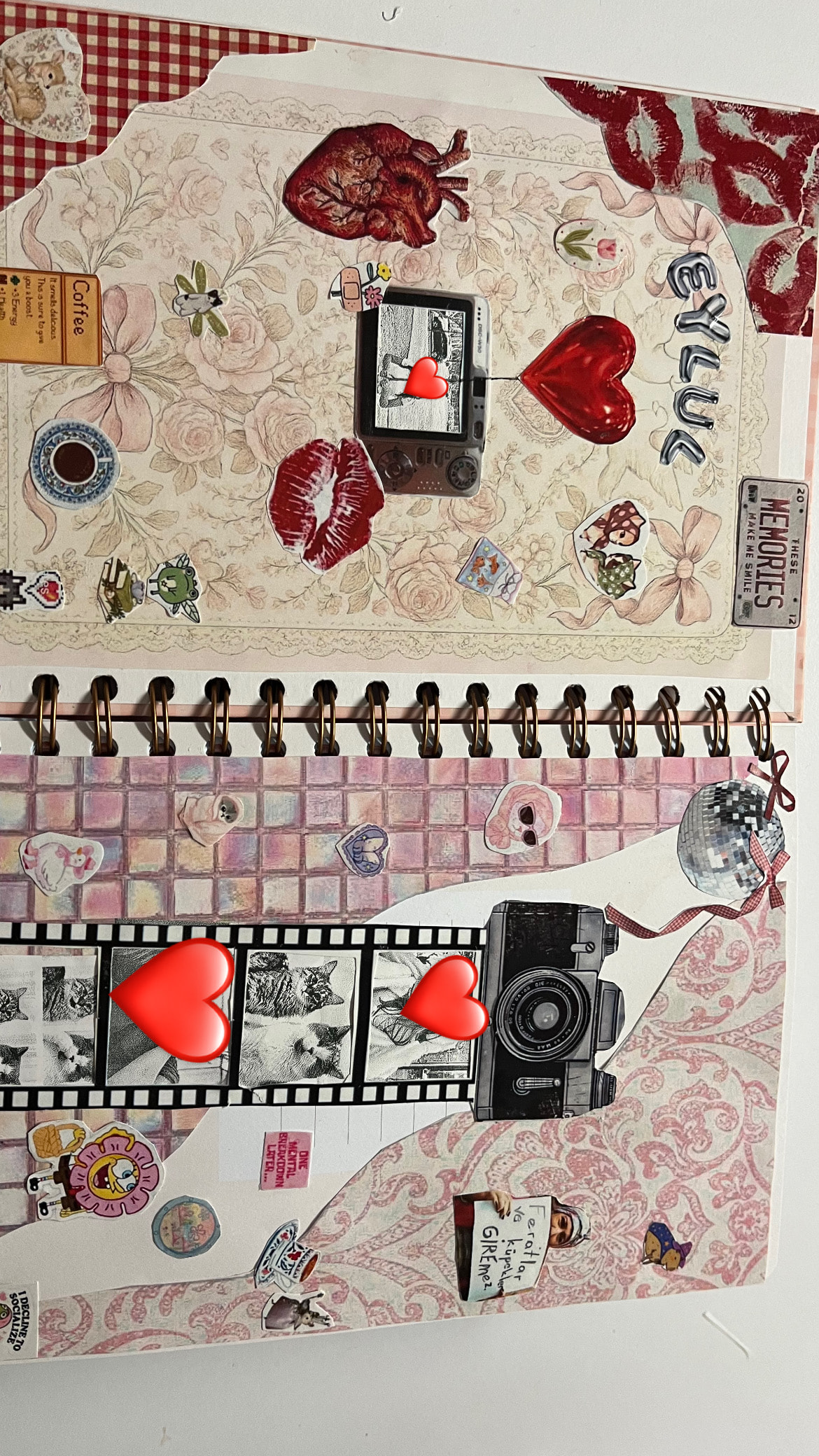 Kendime çıkartmalar da oluşturuyorum. Bu ajandamı daha sevimli hale getiriyor. Bunun için Pinterest’ten kolaj oluşturuyorum ve renkli yazıcıdan çıkartıyorum. Birkaç kolaj örneğimi aşağıya bırakıyorum.