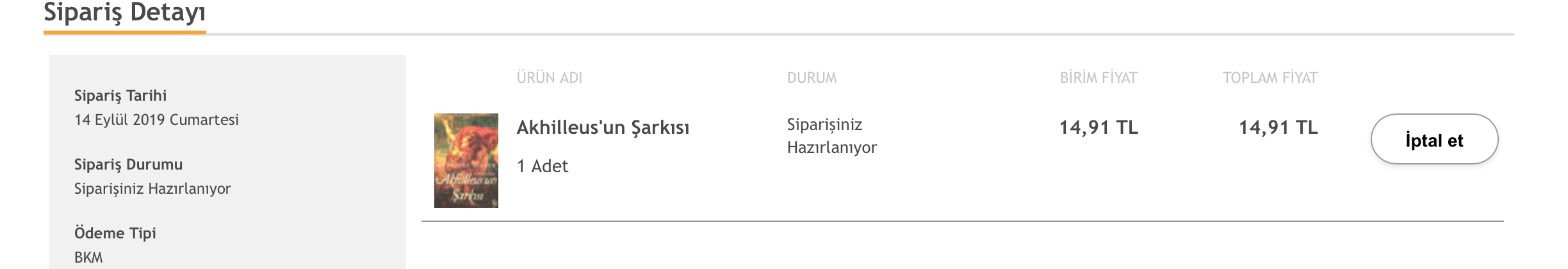 BKM’den hasarlı gelen Ateş Kadehi’ni geçen Cuma göndermiştim PTT Kargo ile. Pazartesi iletildi, dün de para iadem yapıldı. Durumu böyle çözdük. BKM konusuna notum olsun.
