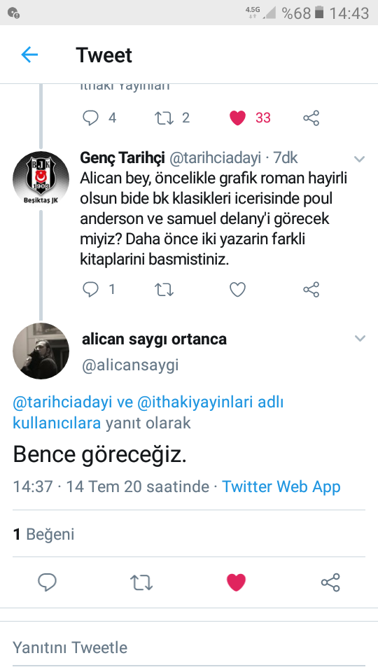 İthaki 90’lı yılların sonu ile 2000’li yılların başlarında gerçekten de çok güzel kitaplar basmış. Sadece bilimkurgu türünde değil, fantastikte de çok güzel serileri okuyucu ile buluşturmuşlar. Hatta İthaki-polisiye diye bir serileri var, onda da gayet güzel polisiye kitaplar basılmış. O dönemde basılan bilimkurgu ve fantastik serilerin/kitapların bir bölümü günümüzde sahaflarda yüksek fiyatlara satılıyor.