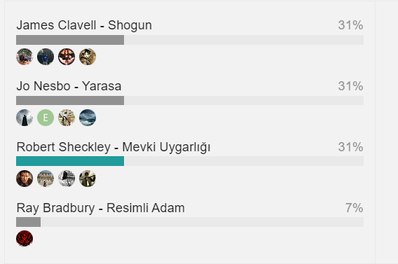 Mevki Uygarlığı’nı ben de okudum. BKK içindeki en iyi kitaplardan biri. Resimli Adam veya Shogun çıkarsa katılacağım. Jo Nesbo okumayı düşünmüyorum. Adaylardan elimde olmayan tek kitap o