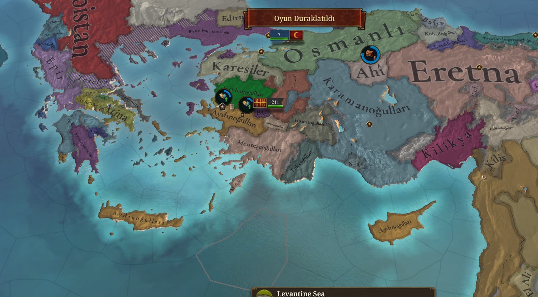 Genelde Paradox grand strategy oyunlarında mekaniği ögrenmek için hızla bir turu kolay modda oynar her şeyi denerim. Bu defa şevkle ve sabırsızlıkla oyuna gireceğicem derken modu normal ayarlarda tuttum. Aydınoğulları ile ekonomi ve önce kültürel işleri hallediyim derken haçlılar anadoluya girdi. Bitme noktasına geldim.