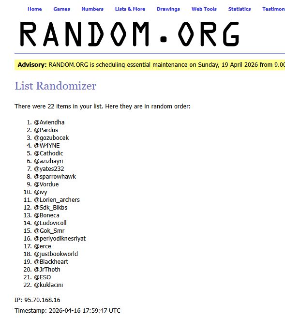 Çekilişimiz sonuçlandı, kazananları tebrik ediyorum.