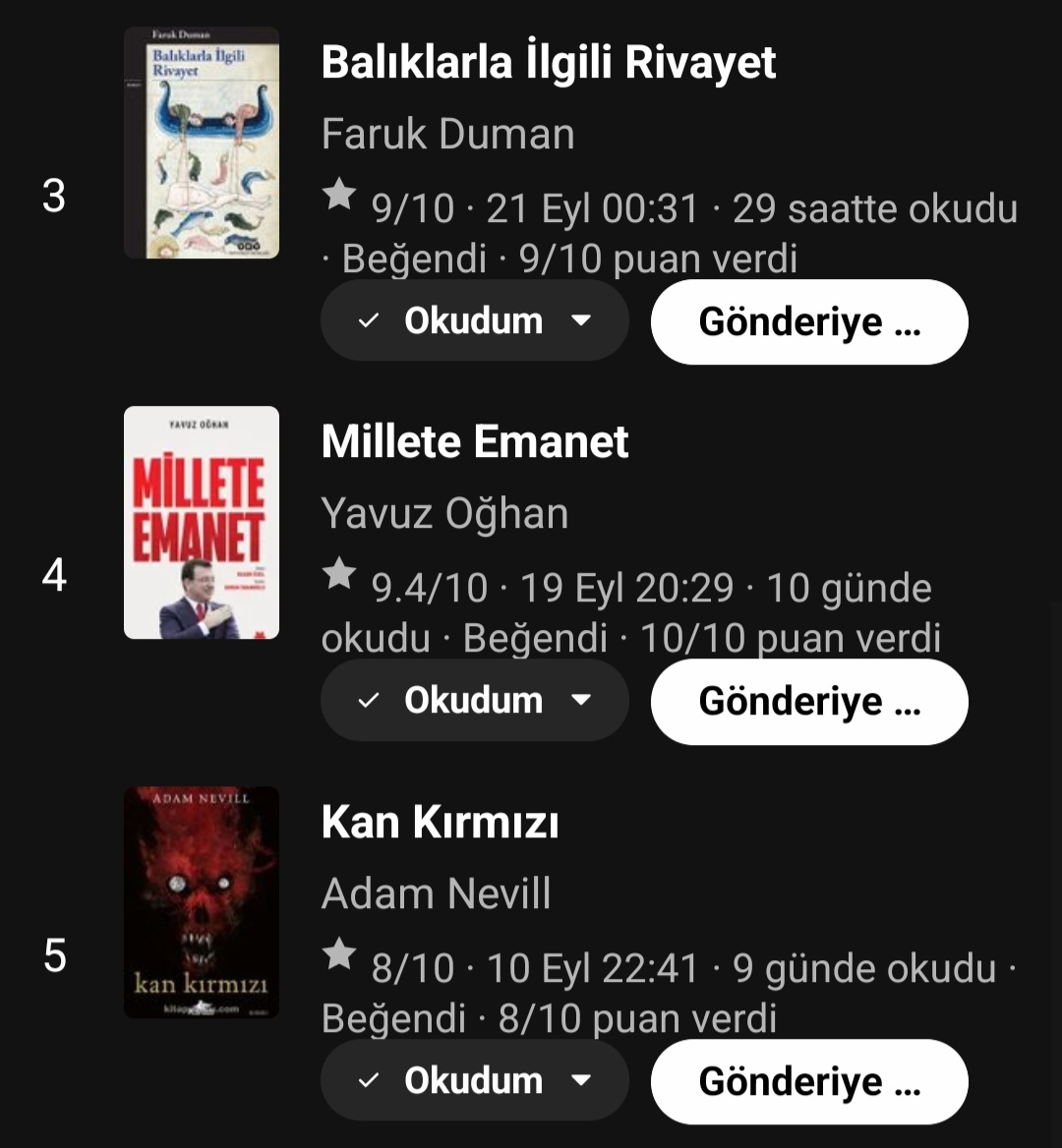 Uzun zamandır okuma hızım düşmüştü. Bu hesabı okuma hızımı artırmak amacıyla açtım. Kısa zamanda hesabın da etkisiyle okuma hızım artmaya başladı. İstediğim seviyeye gelmese de yine de olumlu bir gelişme oldu. Bu ay, 7 tane kitabı okurken 1 tane kitabı da dinledim. Toplamda 8 kitap bitirmiş oldum.