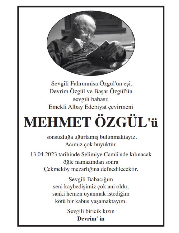 Mehmet Özgül vefat etmiş.