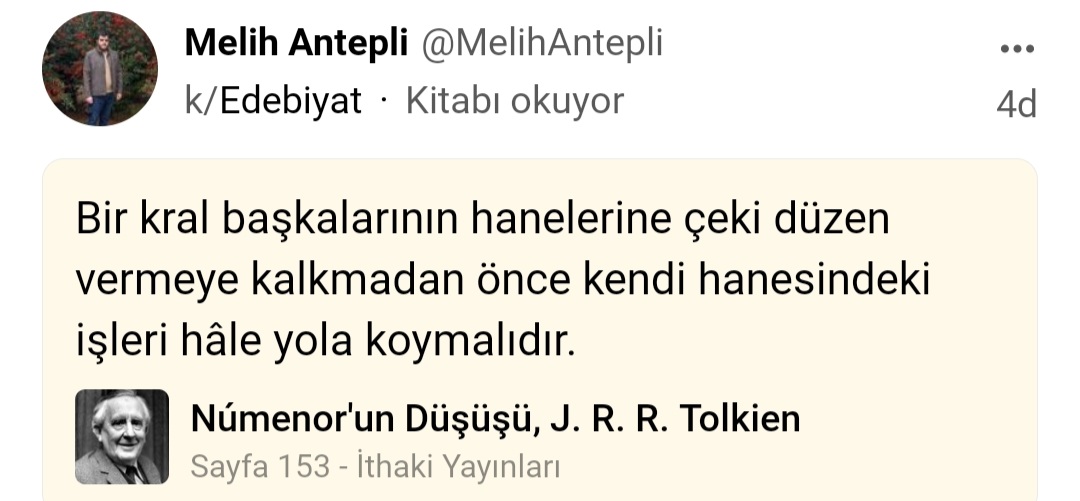 Hikayenizi ve dalga geçiş şeklinizi hayran kaldım üstadım. Sizin gibiler forumdan soğuttu geçmiş zamanda gitmiştim bir daha gelmemek üzere hiç uğramamayı düşünüyorum. Zaten hayat berbat sosyal medyada yeterince Troll var birde sizin gibiler hiç çekilmiyor. Buraya kafa dağıtmaya, edebiyat hakkında konuşmak için üye olmuştum 2020 yılında olmuştum keşke o zamanlardaki gibi kalsaymıştı. Birisi gelir daha yaptığım gönderiyi algılayamazken hakaret eder hiçbir admin, yetkili banlamaz tayfa olduğu için. Diğeride gelir yanıt veriş şeklimle dalga geçer. Afedersinizde siz kim oluyorsunuz? Neyse bu toksik ortamda daha fazla kalamayacağım elveda bardağı taşıran son damla oldu.