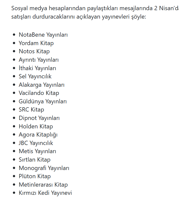 Olimpos da sitesinden bugün satış yapılmayacağını duyuran yayınevleri arasında.