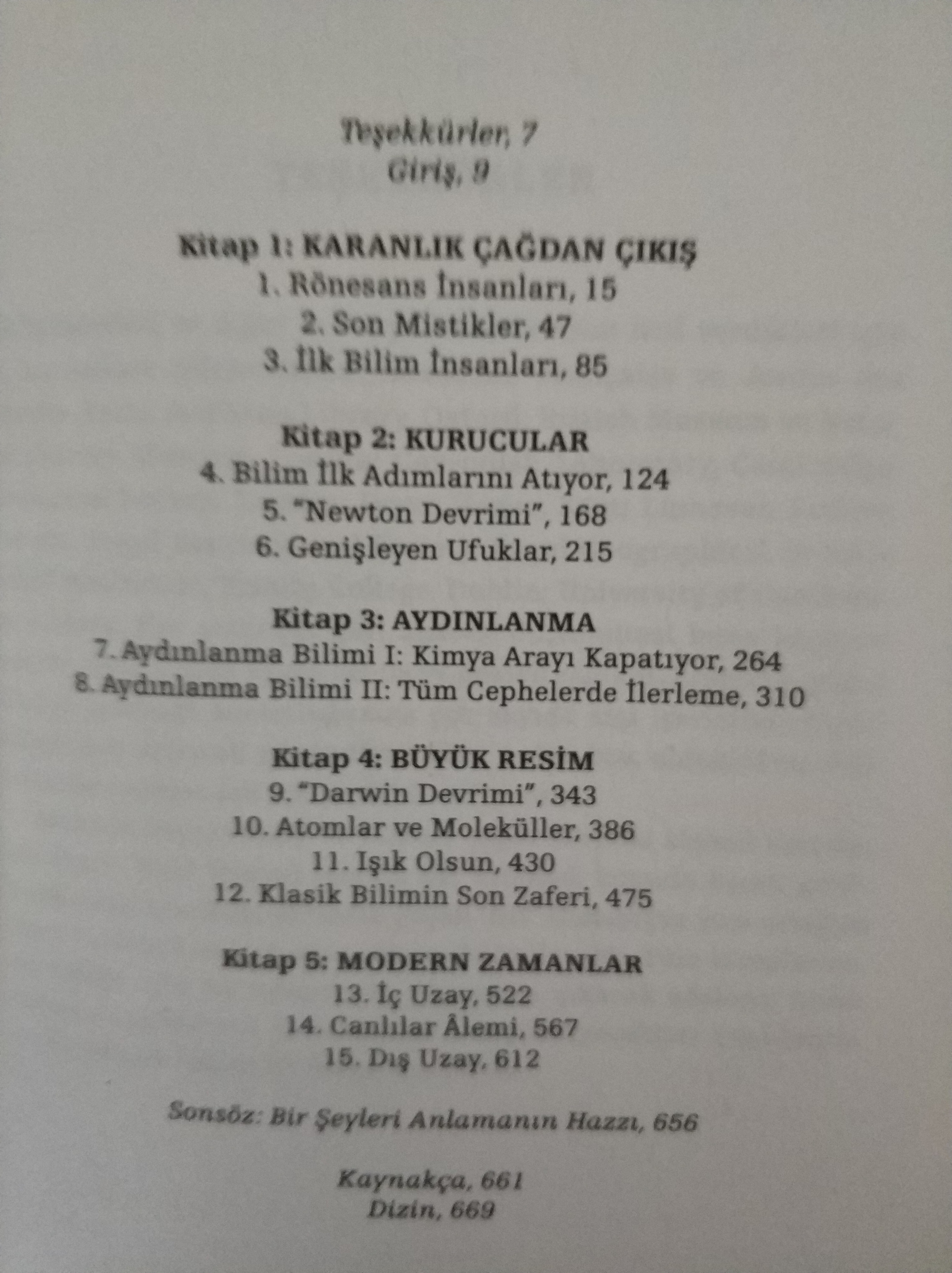 Kitabın baştaki “Teşekkürler” kısmında John Gribbin, yazılan sözlerin bilim insanları olmayanların da iyi şekilde anlamasına yardım ettiği için karısına teşekkür ediyordu. Bunu iyi olarak başardığını söyleyemem. Bir sürü farklı farklı insanın hayatı, bir sürü farklı farklı keşif ve buluşları arka arkaya okumak ise çok yorucuydu. O yüzden her bölümde bir, kurgu kitap okuyayım dedim. Buna rağmen yine de yorucu bir deneyimdi. Hele hele jeolojiyle ilgili bölüm insanı bitirecek cinsten. Modern Zamanlara geldiğinizde ise sayısız keşif ve buluşu arka arkaya görüp bunları özümseyebilmek de oldukça zor. Yani bu konularda bilginiz yoksa, o kadar çok şey görüyorsunuz ki, kitap bittiğinde kaç tanesi aklınızda kalır bilemem. (Çok az olacağı kesin.)