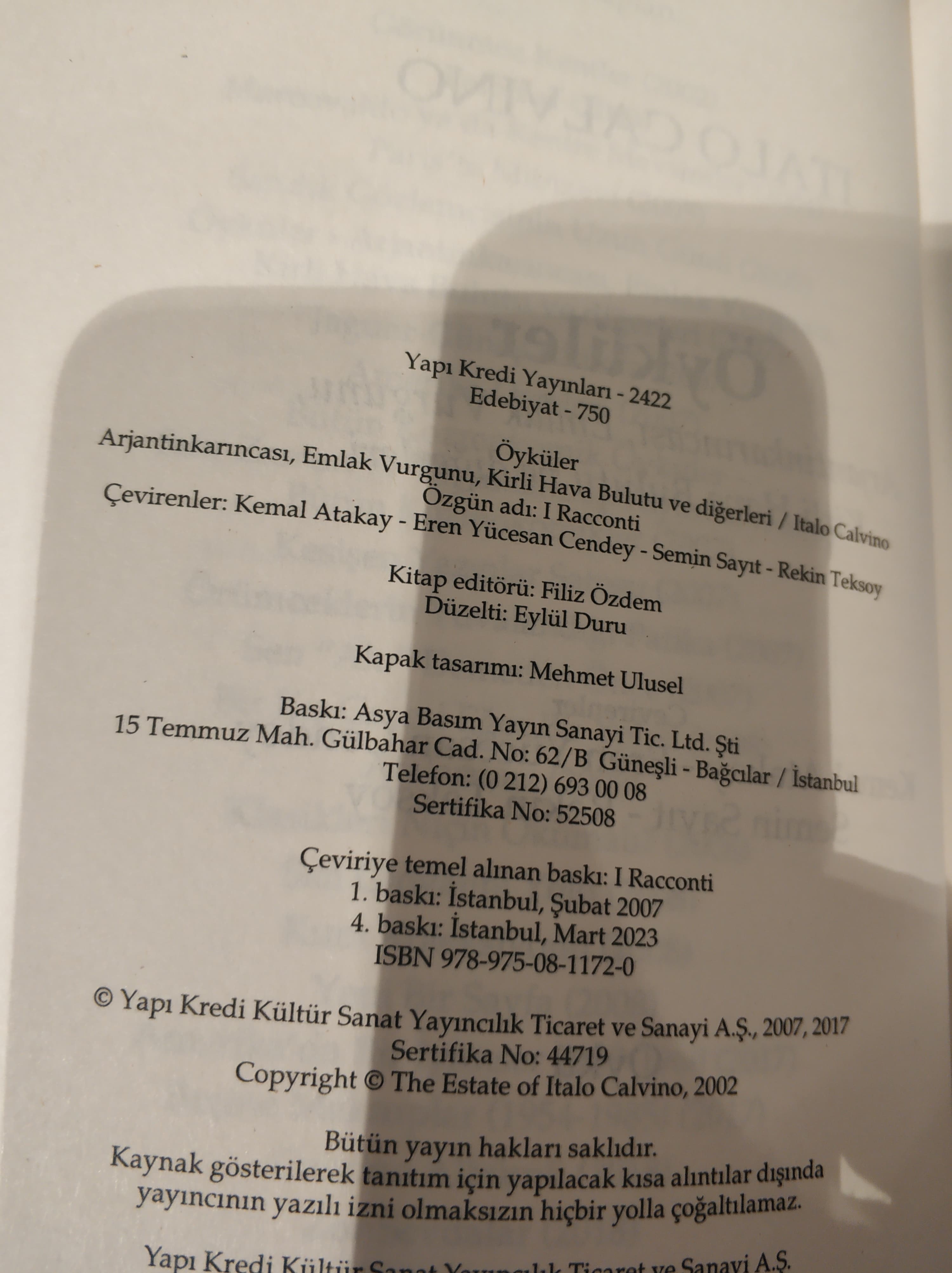 | Görünmez Kentler | Roman | Işıl Saatçıoğlu | 11/2002 | Var |