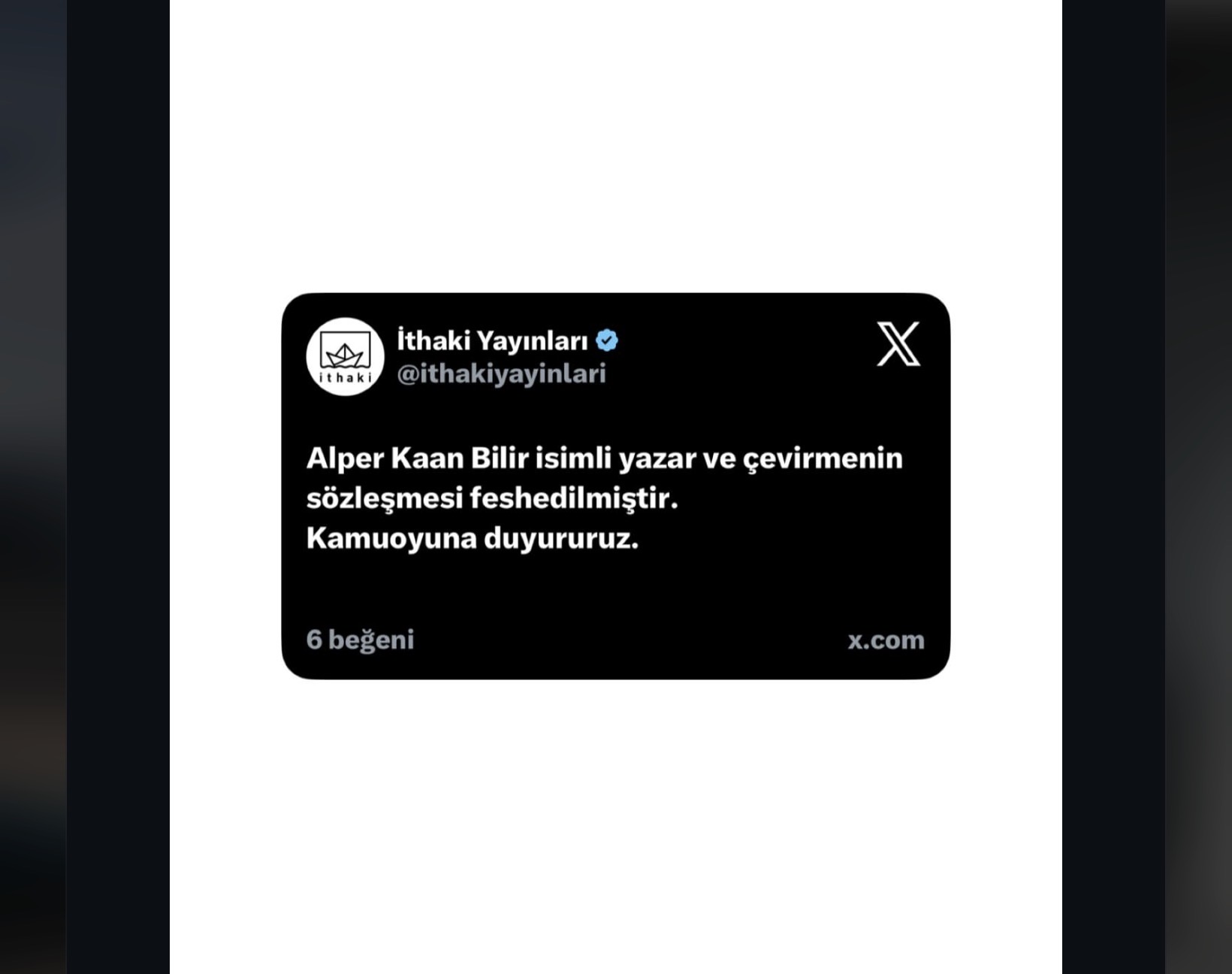 Hocam emin ol , işe alımlarda sosyal medyanız didik didik ediliyor , paylaşımlarınız ne yönde , eleştirileriniz kime vs vs İthaki mutlaka bu kişinin paylaşımlarını biliyordur ama ayyuka çıkana kadar ses çıkarmamak daha doğru geliyor sanırım