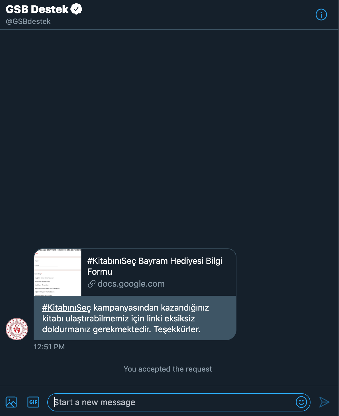 Gençlik ve Spor Bakanlığı’nın kampanyasına katılanlar Twitter DM kutusunu kontrol edebilir. Adres için mesaj göndermeye başlamışlar.