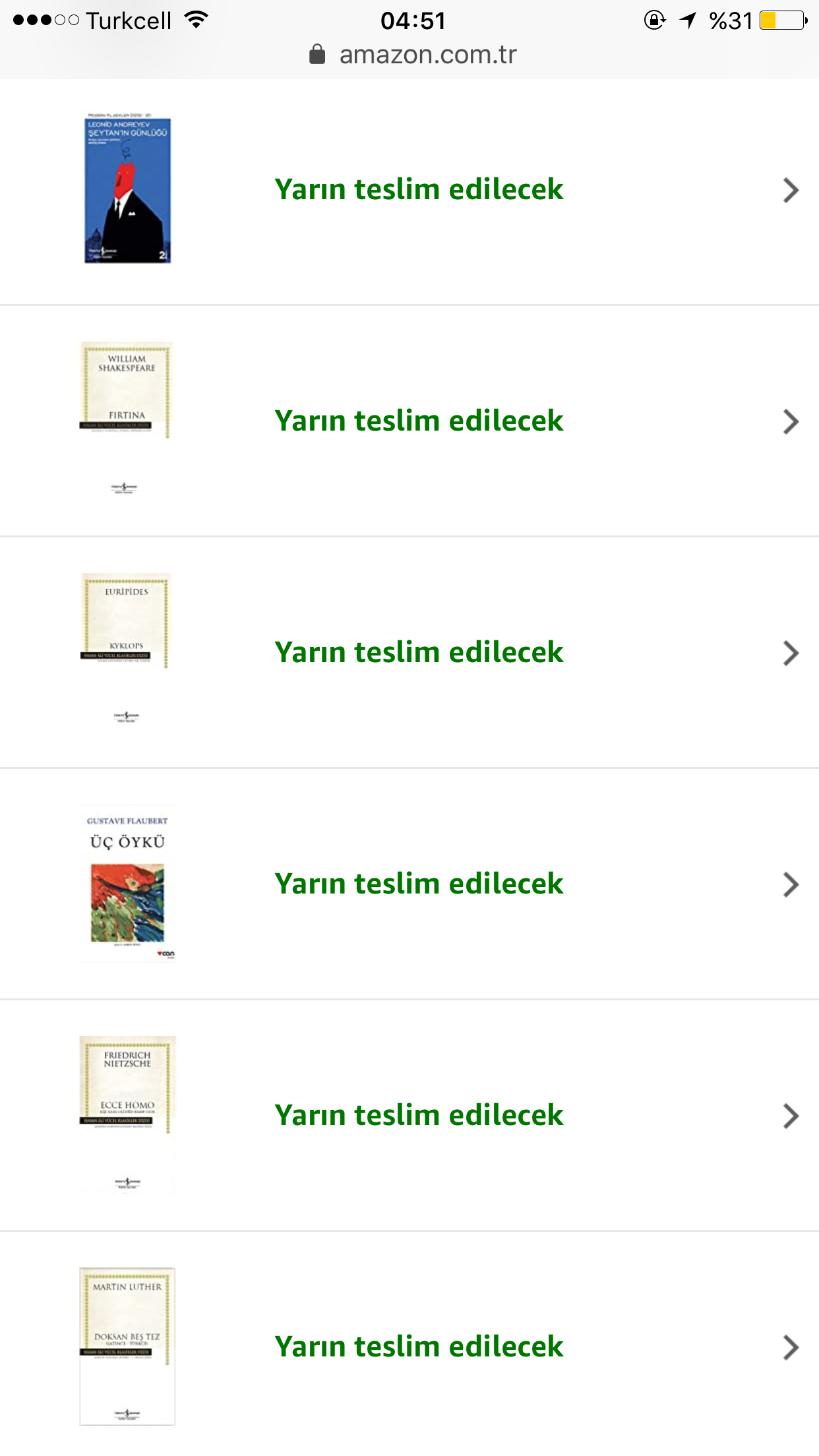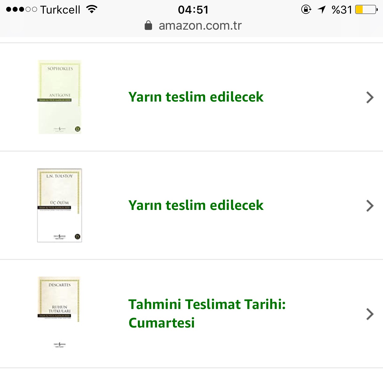 Oldu olduu. 15 kitaba 70 tl ödedim mükemmel bir şeysin sen canım Amazon. Hasan Ali Yücel Klasikleri zaten %50’deydi bu da üstüne bal kaymak oldu