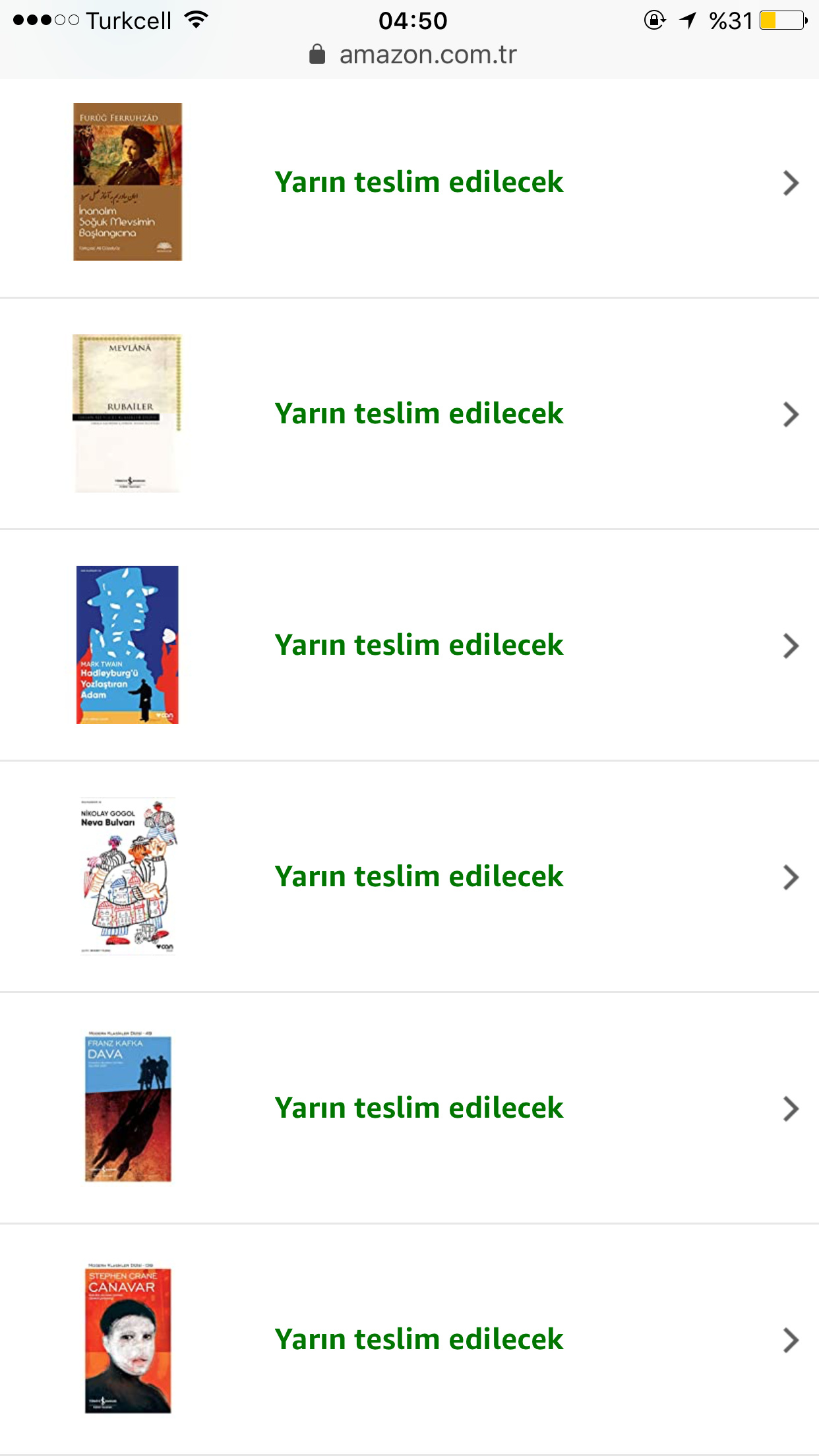 Yeni çıkan Ginko, ithaki ve Alfa kitapları dışında alacağım kitap kalmadı. O kitaplar da henüz Amazon da yok.