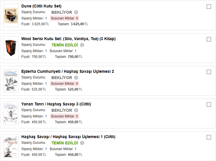 Amazonda kaydettiklerinize ara sıra bakın, benim listemde sürekli bir düşüş var.(İş Bankası Ciltli)