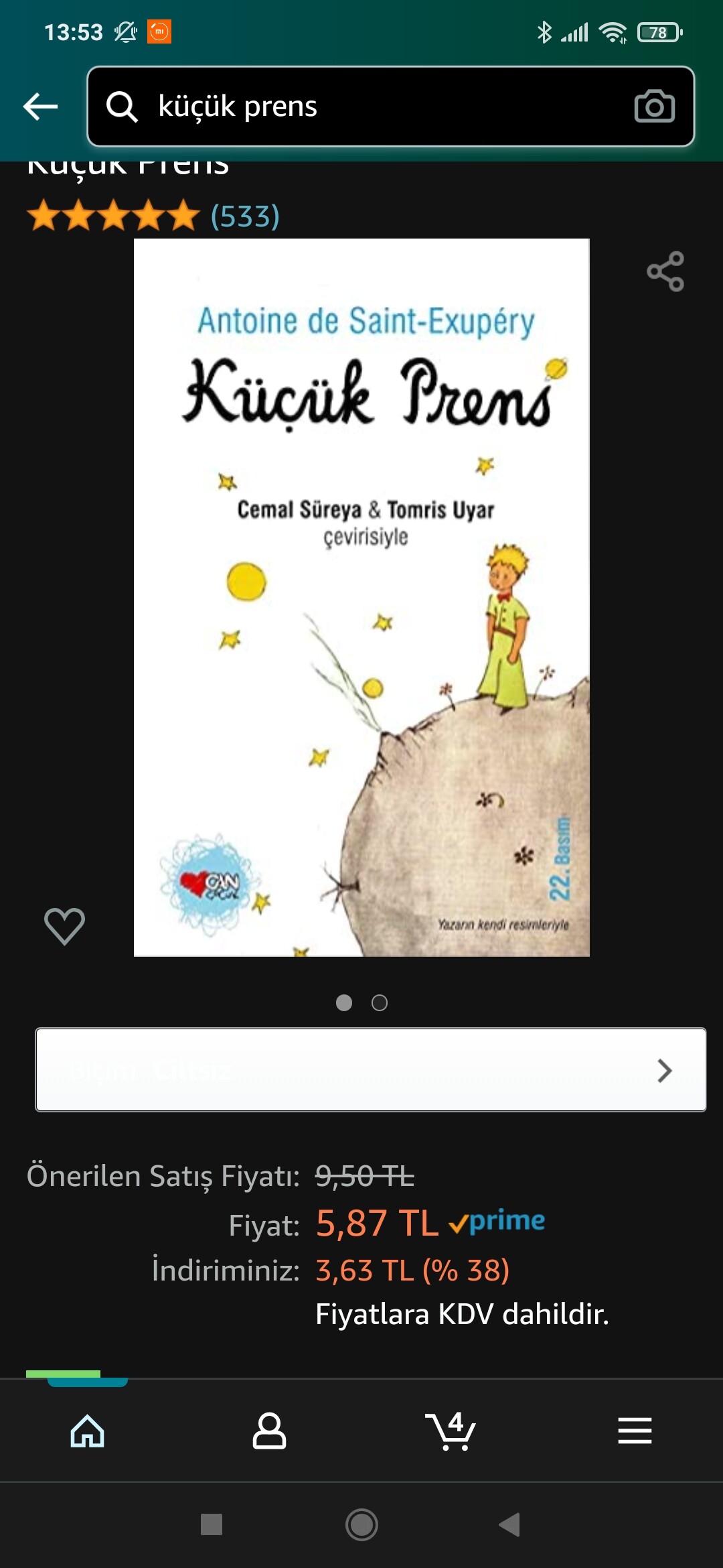 Geçtiğimiz gün İdefix’te kodlarla 46 TL’ye geliyordu. Sipariş vermek için sitede gezinirken stok bitti, alamadım