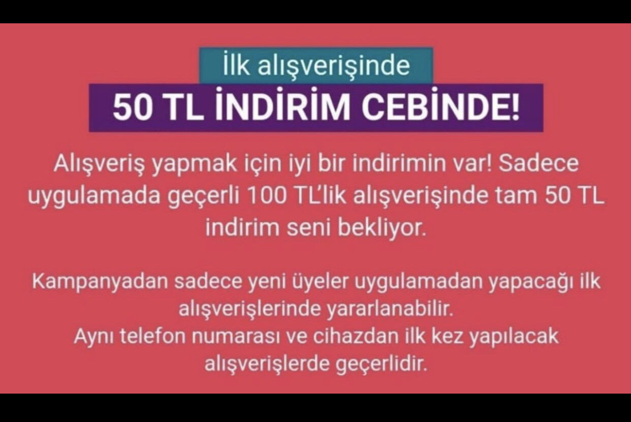 Şu şekilde yaparsanız hiçbir sorun olmaz yeni email adresi yeni telefon numarası ve bulabiliyorsanız yeni bir telefondan indirseniz 50₺ indirim sepette uygulanacaktır