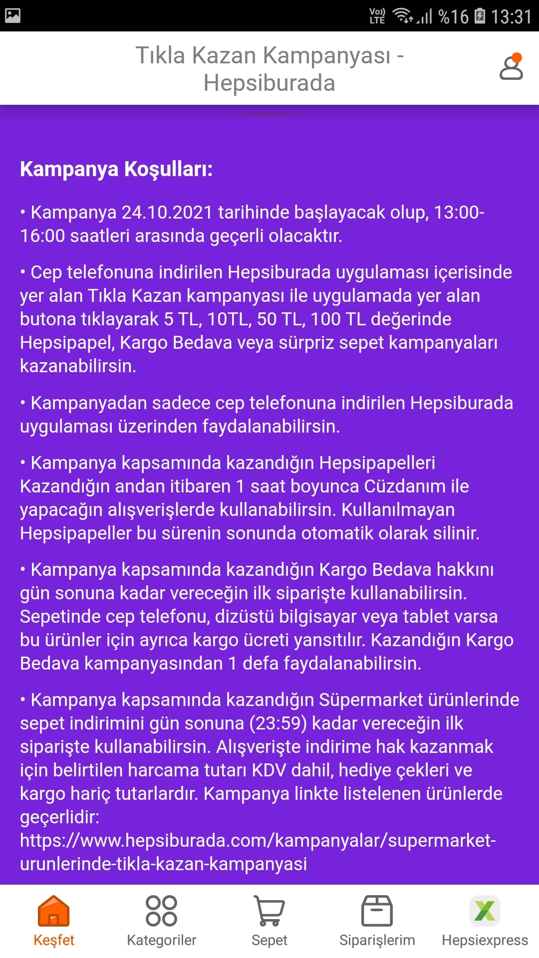 Sepeti 150 TL yaptım, INDKD15 kodu ile 15 TL indirimli aldım.