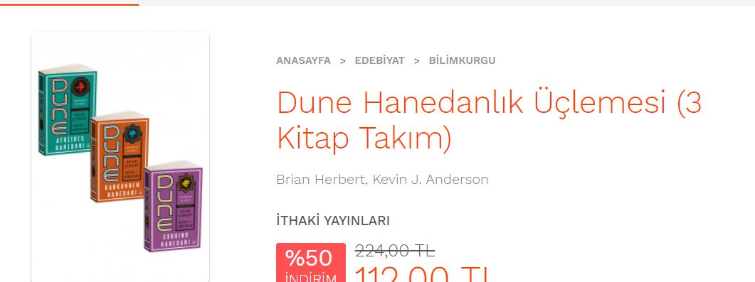 Dune ve Dune Hanedanlık setleri %50 indirimde. İthaki yayınlarının bazı kitapları setleştirilmiş ve %50 indirime girmiş: İlkNokta