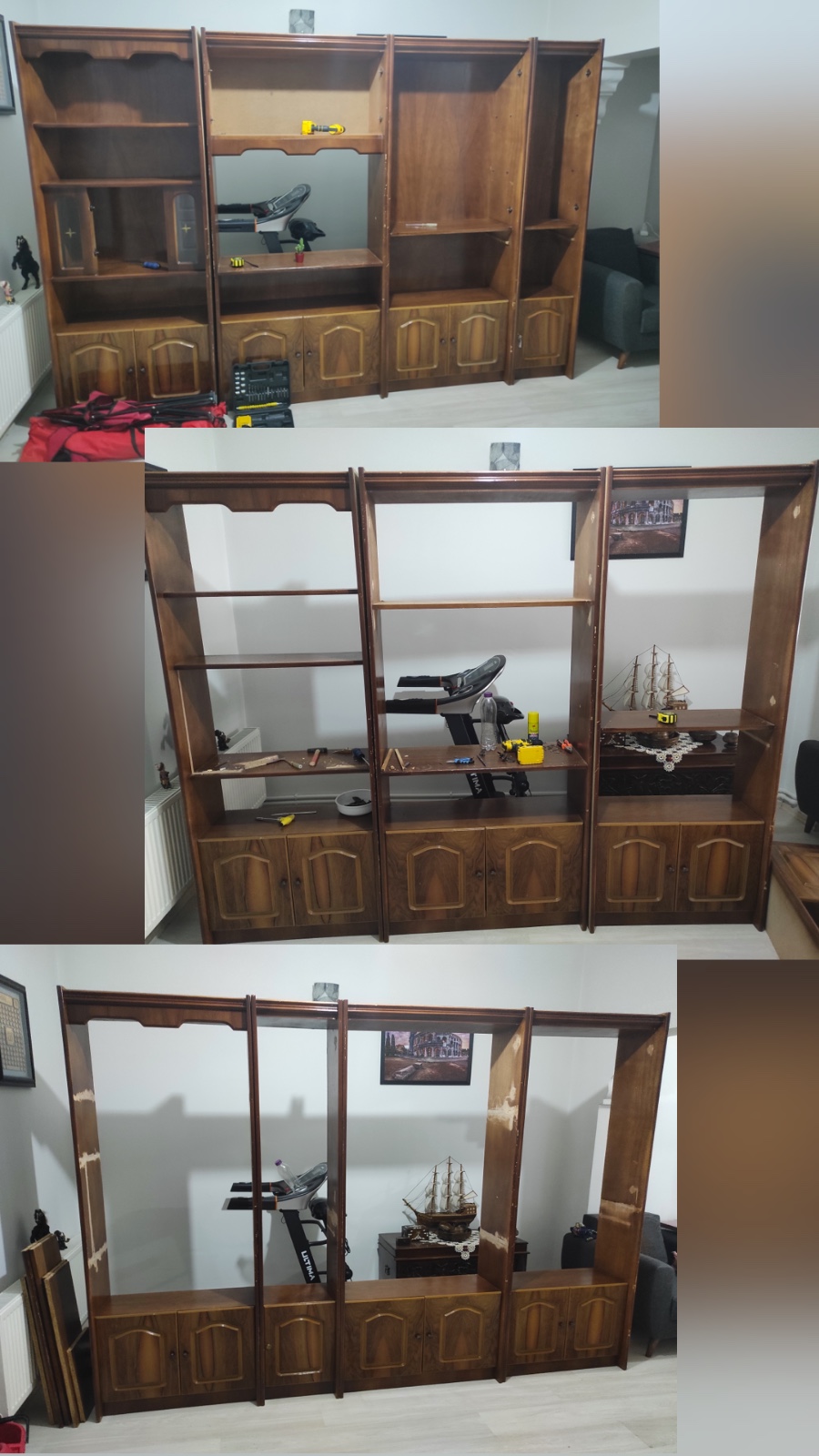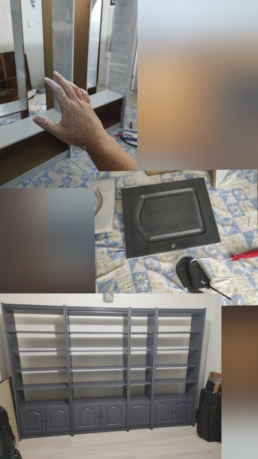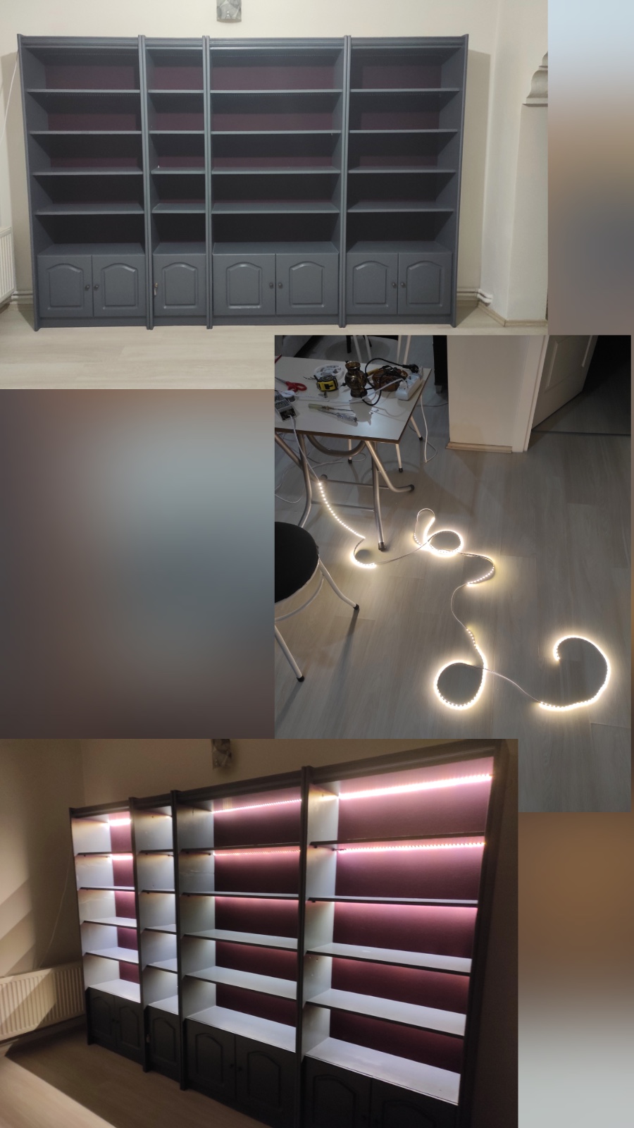 Teşekkür ederim. Rich boya kullandım. Antrasit rengini hedefleyerek siyah ve beyaz boyayı göz kararı karıştırdık. Boyutları da 2 metre yükseklik 3 metre genişlik, raf araları da 26cm.