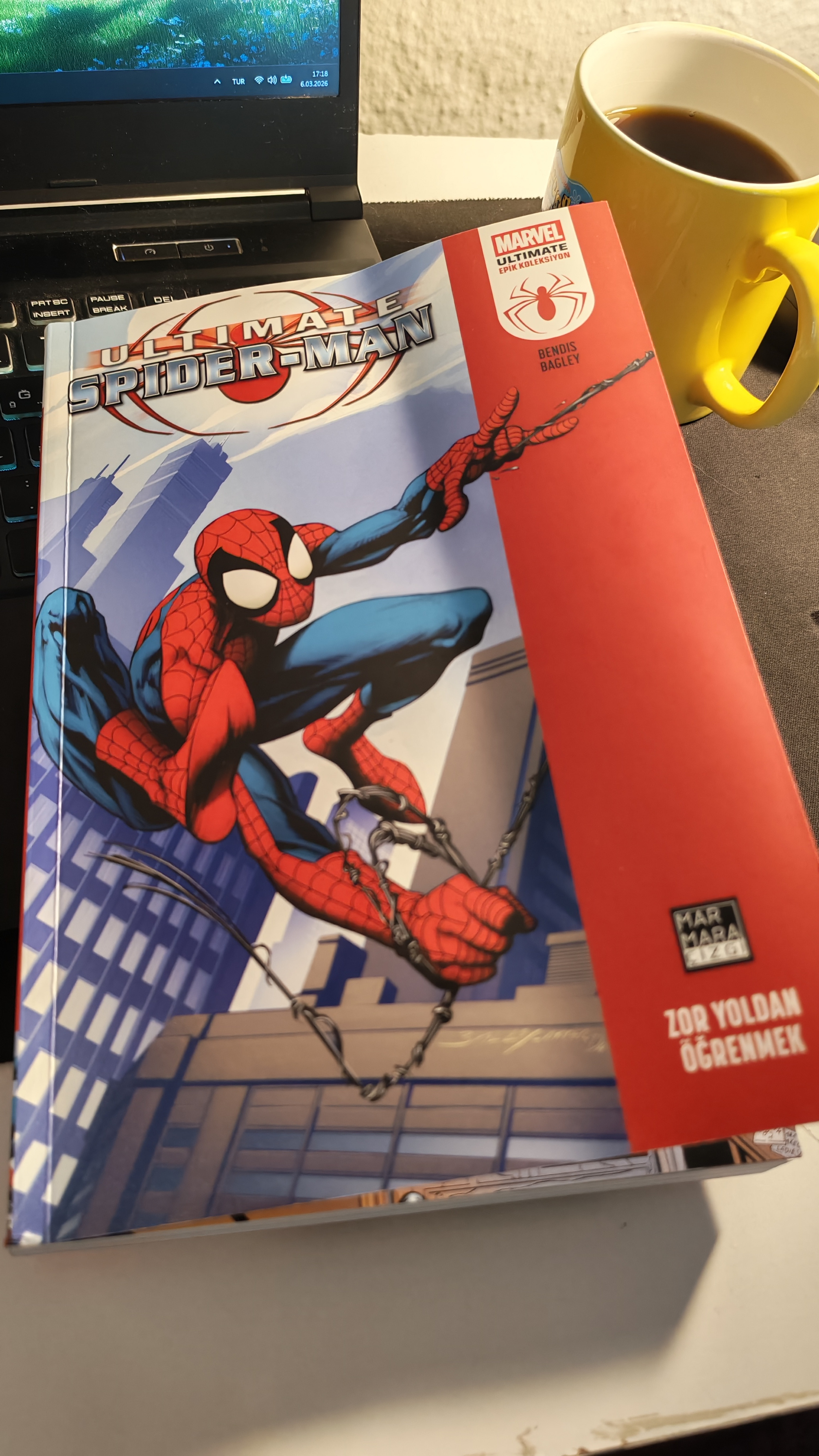 Bu hafta Spider-Man 2 ye başladım, flashbackler ile birlikte eski liseli spider-man origin zamanlarını özlediğimi fark ettim. Daha sonra Ultimate’in basıldığı aklıma geldi ve sipariş edip, geldiğinde ise kahve eşliğinde okumaya başladım. Ptt kendince ufak dokunuşlar yapmış kargoma bu arada ama sağlık olsun.