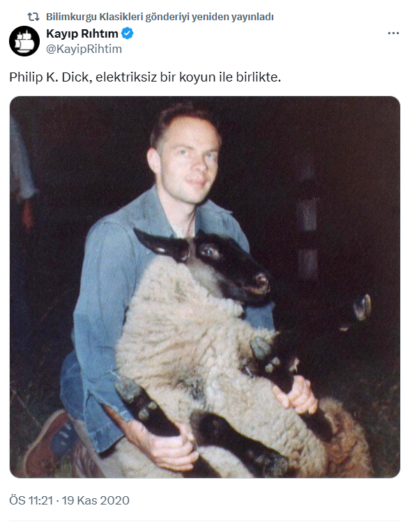 Philip K. Dick, elektriksiz bir koyun ile birlikte. pic.twitter.com/4wWrJ3Drmq