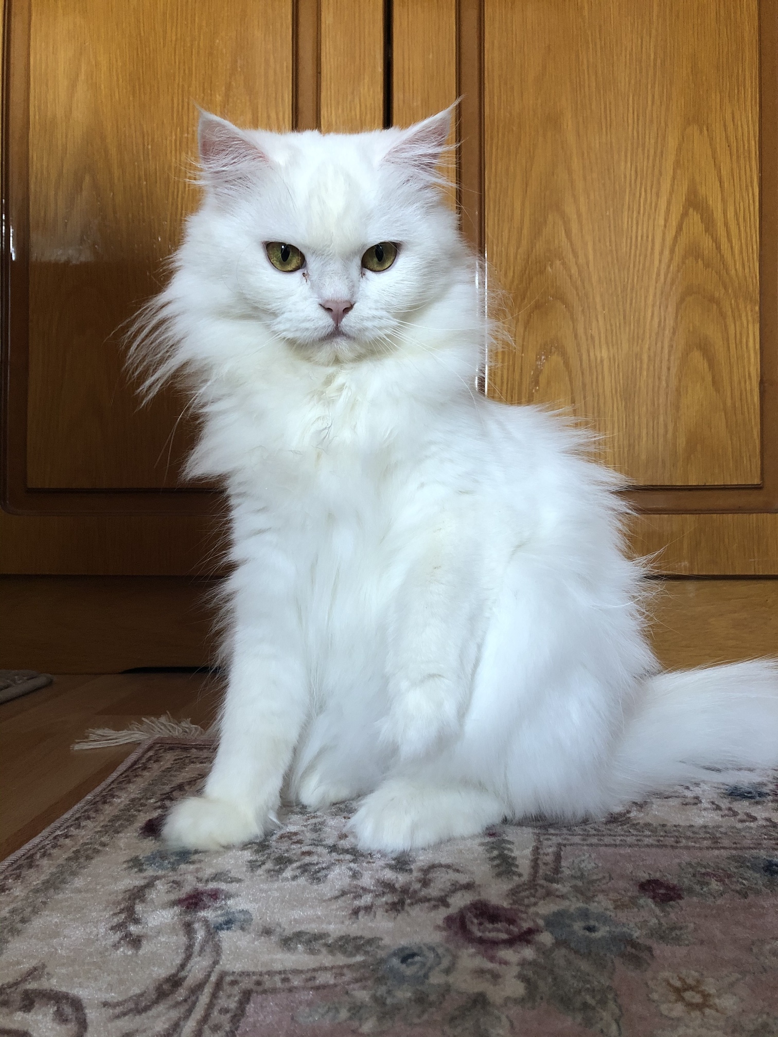 Kendisi bir süre bende misafir kalacak, yerini yadırgamasın diye yıllardır kendime bile almadığım bu minderlerden aldım sabahtan beri böyle duruyor. Bana da biraz koklatır dedim ama yok nerede… Adı da Muhittin.