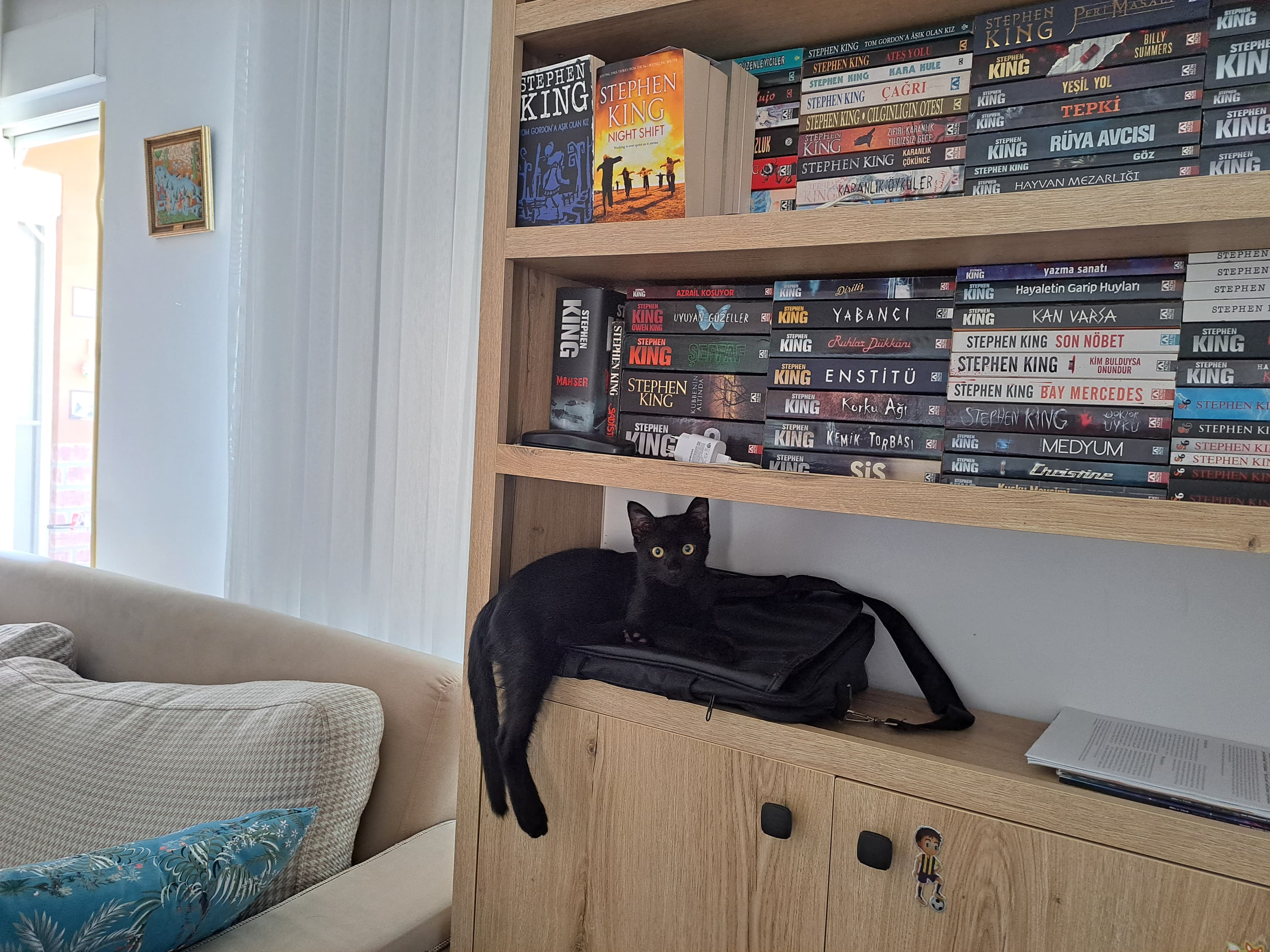 Geçen gece NBA maçını izlemek için erken yattım. Gece 3’te kalktım. Baktım bizimki yok evde. Kaçtı diye üzüldüm ama maçın devre arasında evin etrafında buldum. Kedi istemeyen annem ise ağlamış odasında. Ben bulunca çok sevindi. ![]()