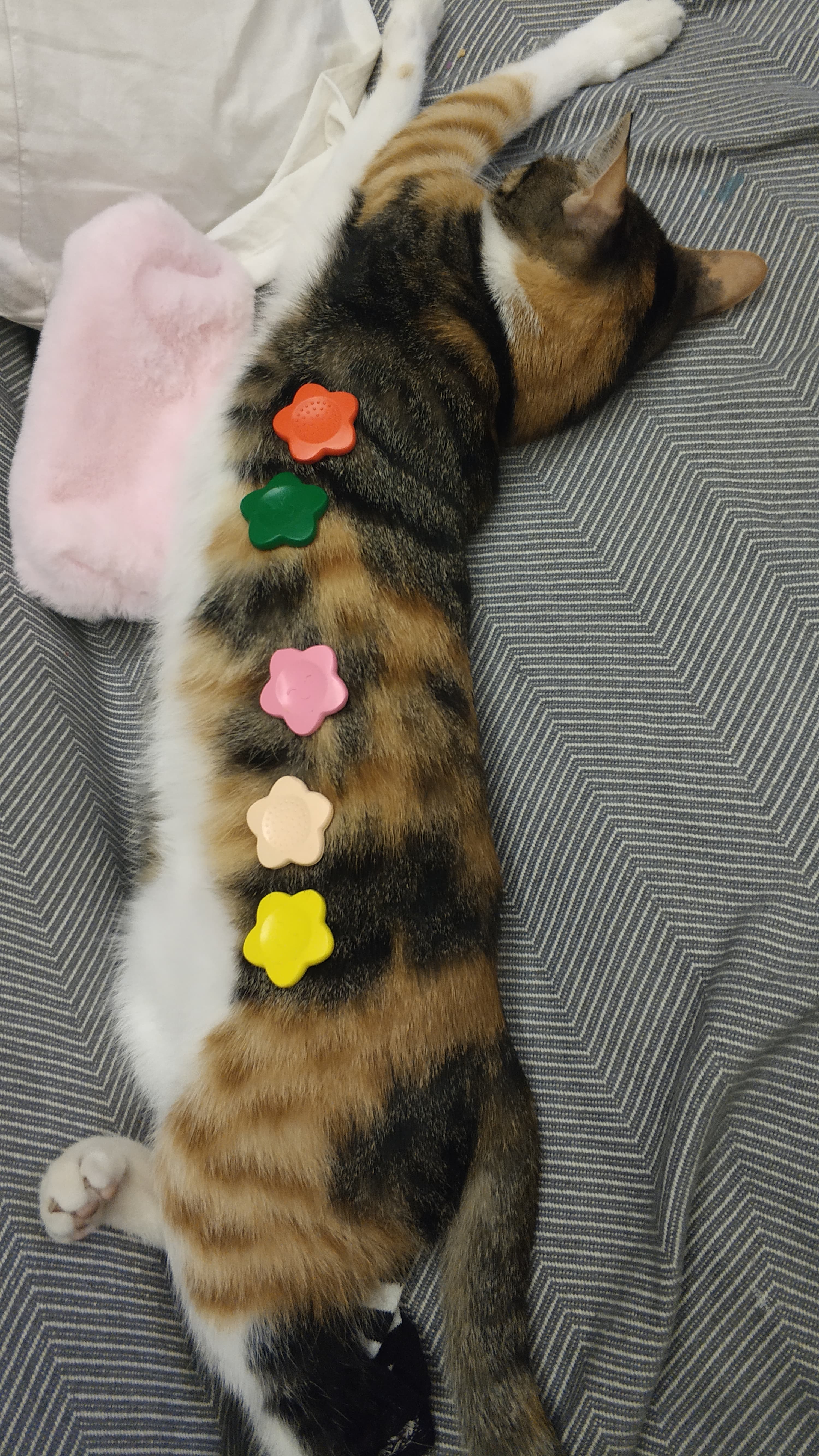 Bu arada çok önemli bir detayı atlamışım. Kedinin yuttuğu tüyleri yedikleriyle birlikte kusmayıp dışkı yoluyla atması için iki üç günde bir malt macunu vermek lazım. Diş macunu gibi bir şey. Parmağınızın ucuna 2-3 cm sıkıp yediriyorsunuz. Bir tüp uzun süre gidiyor. Çok da hoşlarına giden bir şey. Ama başlamak için kaç aylık olması lazım, bunun bir sınırı var mı bilmiyorum.