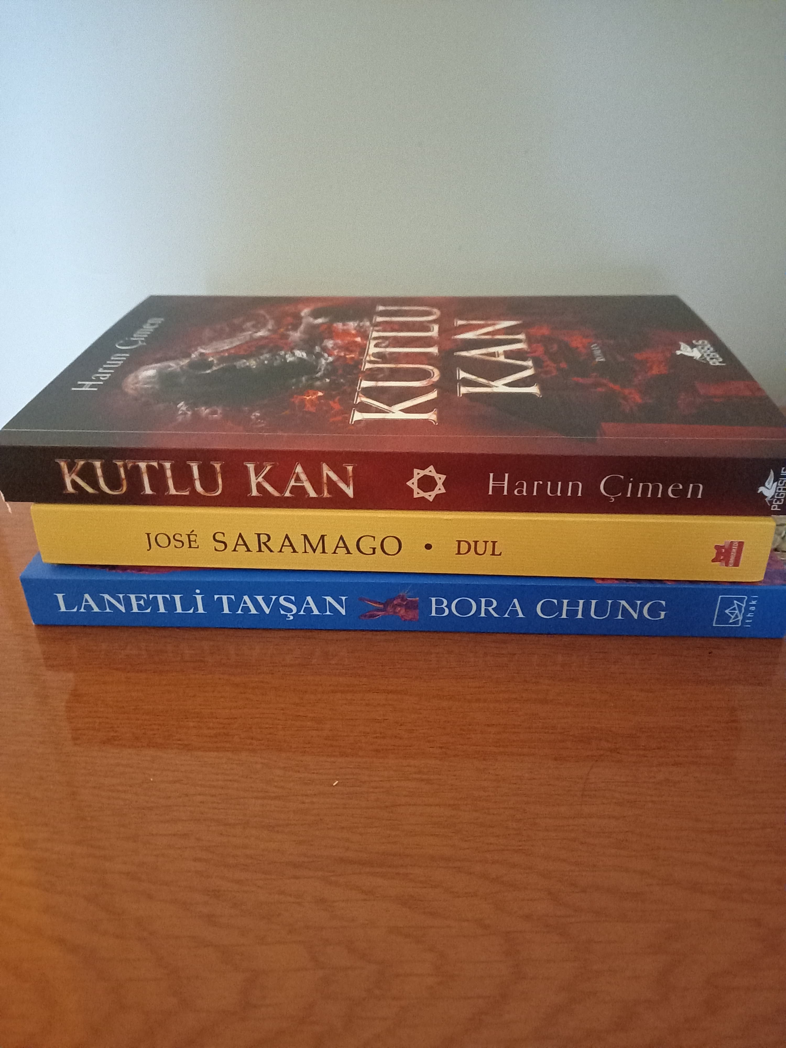 Dost Kitabevinden. Evde canım sıkılınca Kızılay’a indim, inmişken de kitap almasam olmazdı. Kutlu Kan forumdan arkadaşın kitabıydı aldım hemen, Saramago olmazsa olmazım zaten görül görmez aldım ama Saramago ayraçsız maalesef hiçbirinde yoktu baktıklarımdan, Lanetli Tavşan ise hiç aklımda yoktu görünce aldım. Lanetli Tavşan kitabının kapağına @Bunn-Y 'nin fotoğrafını koymuşlar ![]()