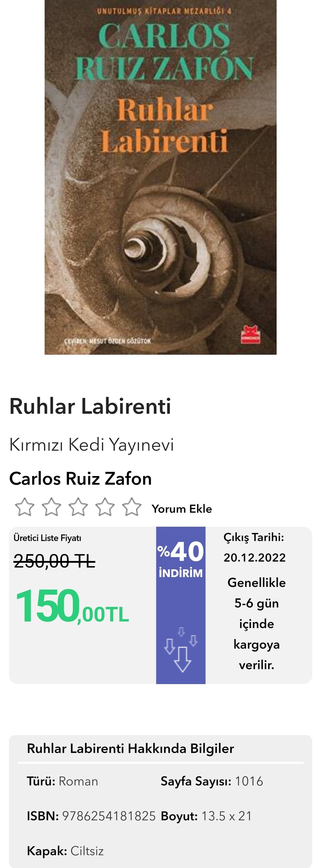 Tercih eder misiniz bilmem ama bkm kitap’ta %33, kitapsepeti’nde %40 indirimli satışta şu anda. Çıkış Tarihi: 20.12.2022 yazıyor ancak.