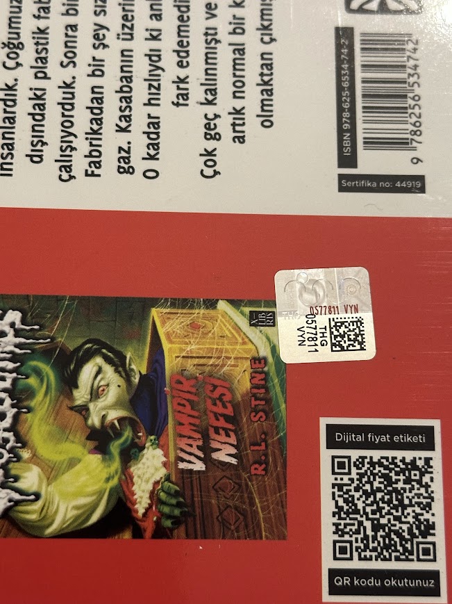 Sürekli değişen fiyatlar yüzünden yayınevleri kitap arka kapaklarına fiyat basmayı birkaç sene önce bırakmıştı. Çocukluğumda okuduğum Goosebumps serisinin yeniden basıldığını görünce çıkan iki kitabı satın aldım arkasında bunu gördüm. Böyle bir çözüm üretmişler. Mantıklı ancak üzücü.