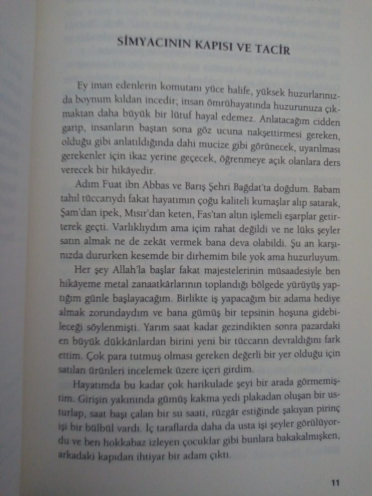 Nefes geldi mi sonunda. Bir şey rica edeceğim, hikayelerden birinin çevirisini merak ediyorum da. Tüccar ve simyacının kapısı gibi bir şey olması lazım. Bir iki sayfasını gönderirseniz sevinirim.