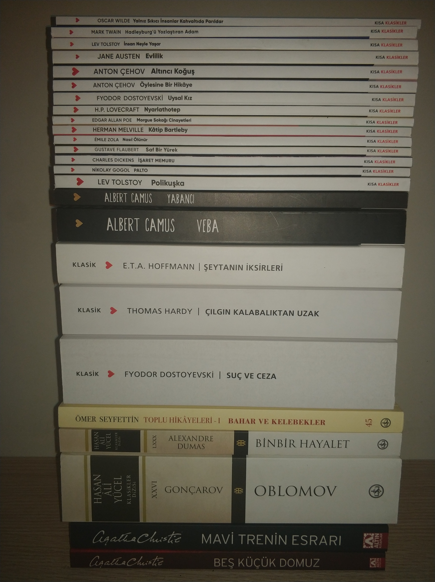 Eskisi kadar çok okuma yapamayacağımı düşündüğümden öncelikli olarak Can Yayınları’nın Kısa Klasikler serisinden 15 kadar kitap almıştım(Kapak tasarımlarını çok sevdim). Ama eskisinden de daha çok okumaya başladım ve günde ikişer üçer kısa klasik gidince seriyi bir anda bitirmemek için Martin Eden (Başlarda muhteşem bir karakterdi ama ortalardan itibaren kitap sıkmaya Martin Eden’de gözümden düşmeye başladı.) ve Dünya Tarihi 101’e(İlk defa dünya tarihi okuyacaklar ve daha önce bu konuda daha detaylı kitaplar okuyup da kısa bir şekilde o kitaplardakileri yeniden kafalarında canlandırmak isteyecekler için oldukça ideal.) başladım. İkisi de yarın bitecek.