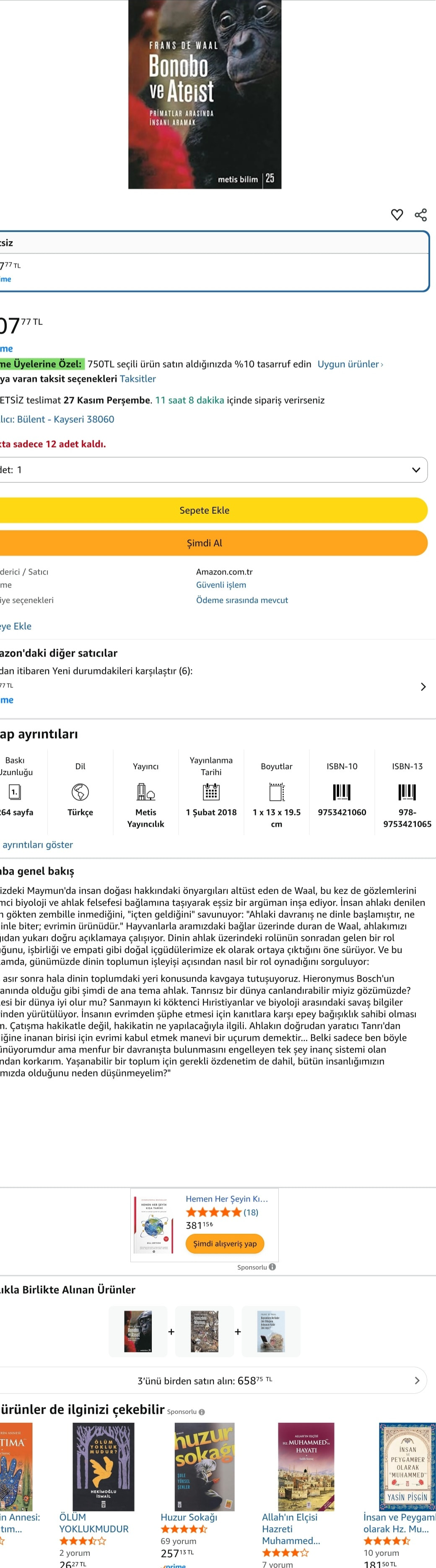 Frans de Waal’in Bonobo ve Ateist kitabına bakarken Amazon’un bana önerdikleri: