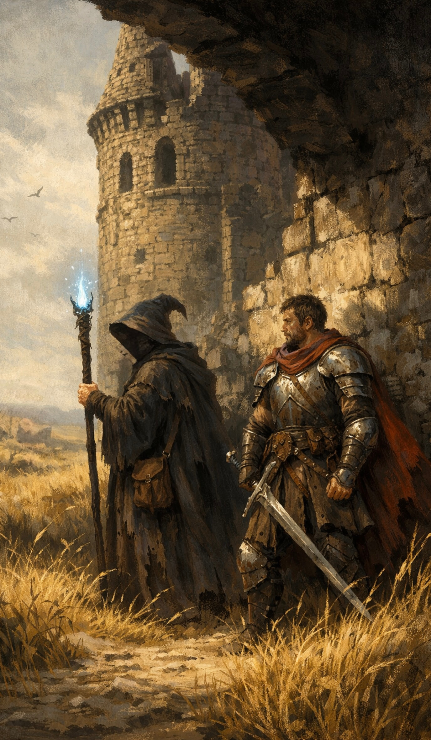 Tepenin yamacındaki terkedilmiş kulenin gölgesi, bozkır ovaya gölgesini düşürürken, kurumuş sarı otlar rüzgarla tarandı. Savaşçı, kılıcına yaslanmış bekliyordu. Rüzgar, eski bir kehanetin sözleri gibi kulaklarına fısıldayıp geçti.