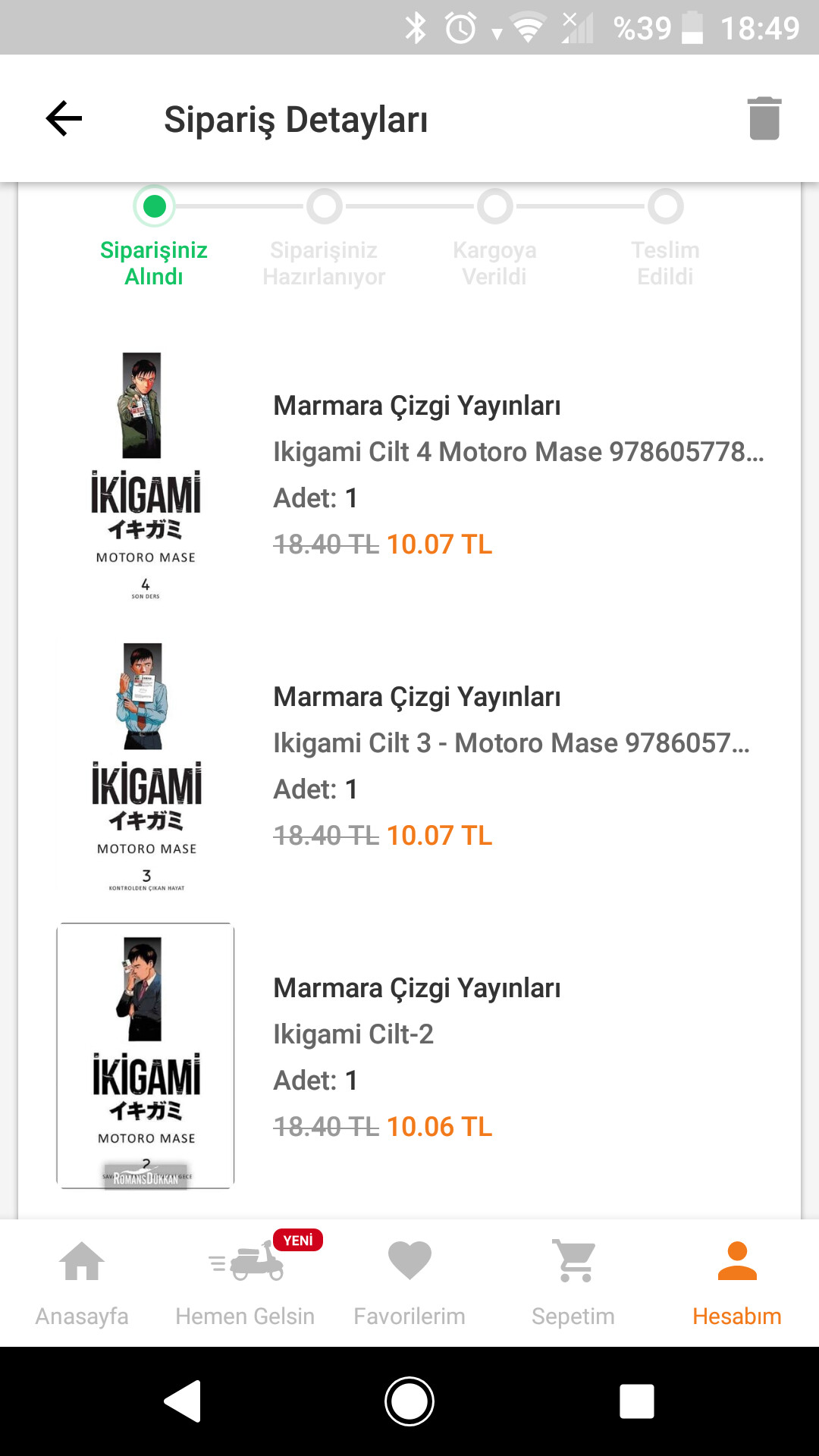 Gelen koleksiyon hediyesi ile takip ettiğim bir manga serisinin devamını aldım. Özellikle kur fiyatlarını düşünürsek sanırım bundan sonra kuponları ingilizce kitaplar üzerine kullanmayı düşünüyorum. Başka türlü alınmıyor çünkü