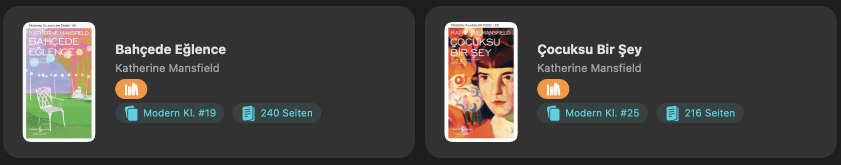 Mansfield’in 2 Kitabida maalesef Is Bankasında yok artık, telif nedeniyle. Bende uzun süre aradım eski Sert-Kapak versiyonlarını fahis fiyatlara Nadir’den aldım.