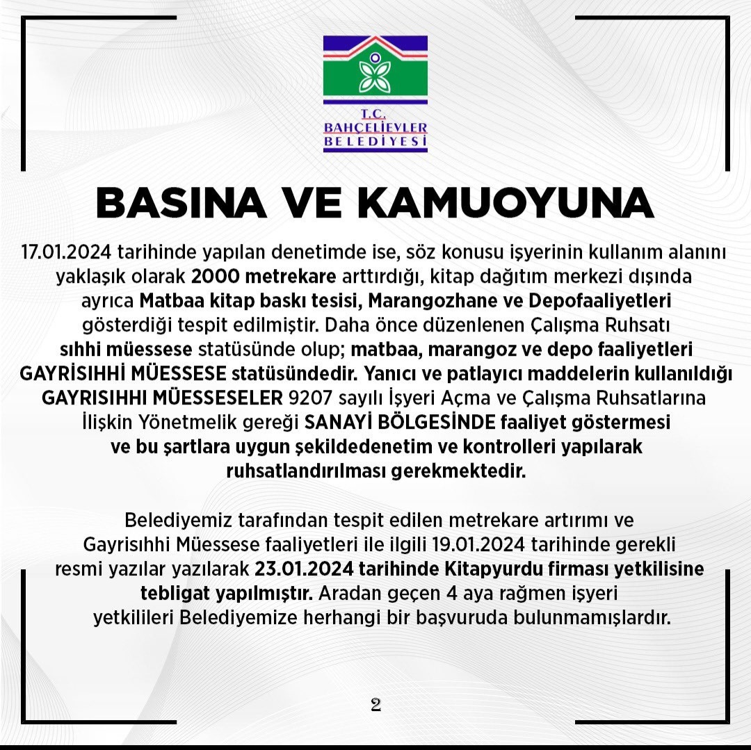 Kitapyurdu KYD, kapra, karbon markaları ile de bu binada baskı yapıyor. O makineler için belediye matbaa makinesi bunlar, burasının izni depo izni o nedenle çalışamazsınız diyor.