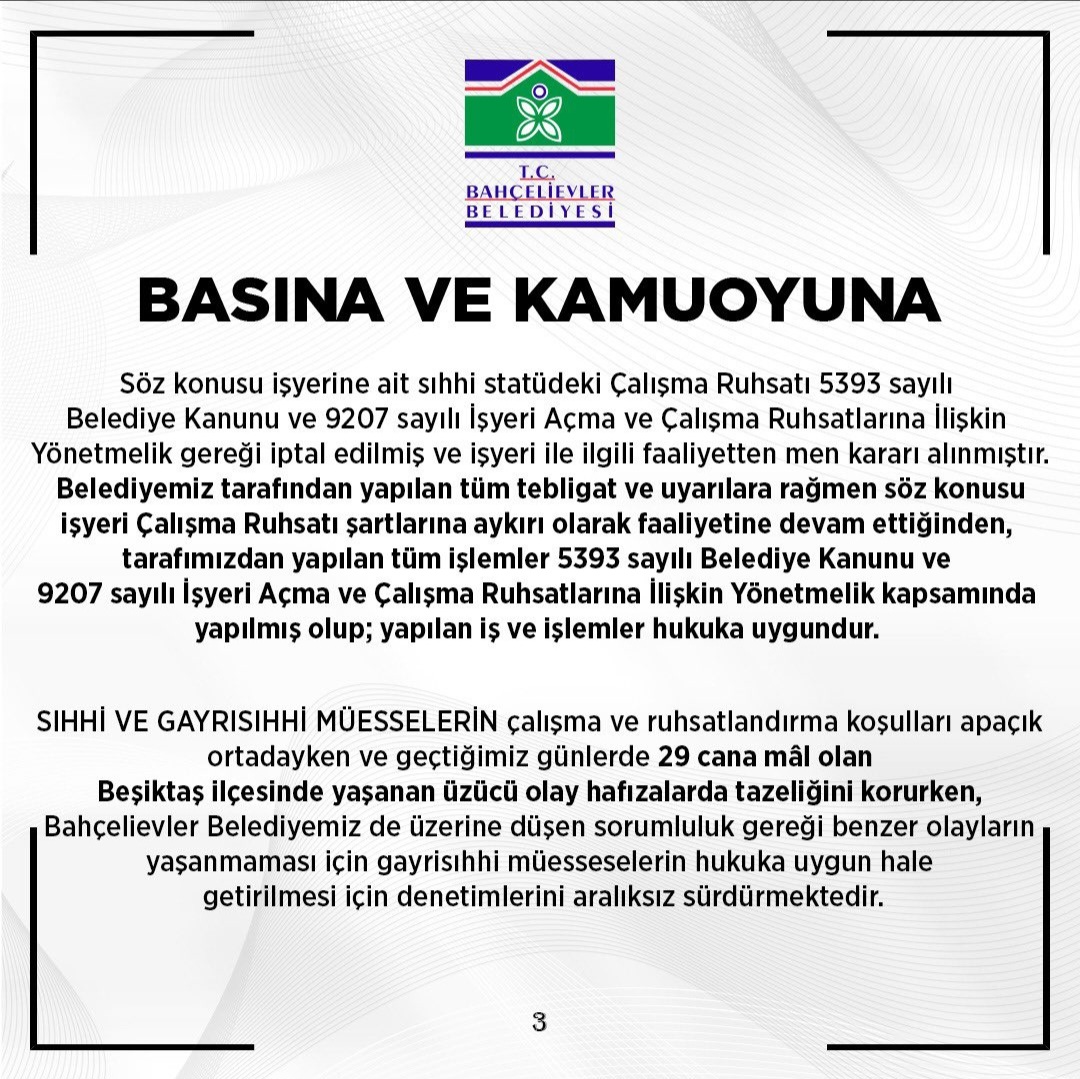 Ruhsatının eksik olduğu diye bir ibare belirtmişler. Bir yerin ruhsatı ya vardır ya yoktur. Eksik nasıl oluyor onu anlamış değilim. Kendilerinin dediği gibi demek 2018 den bu yana ruhsatları bulunmuyormuş.