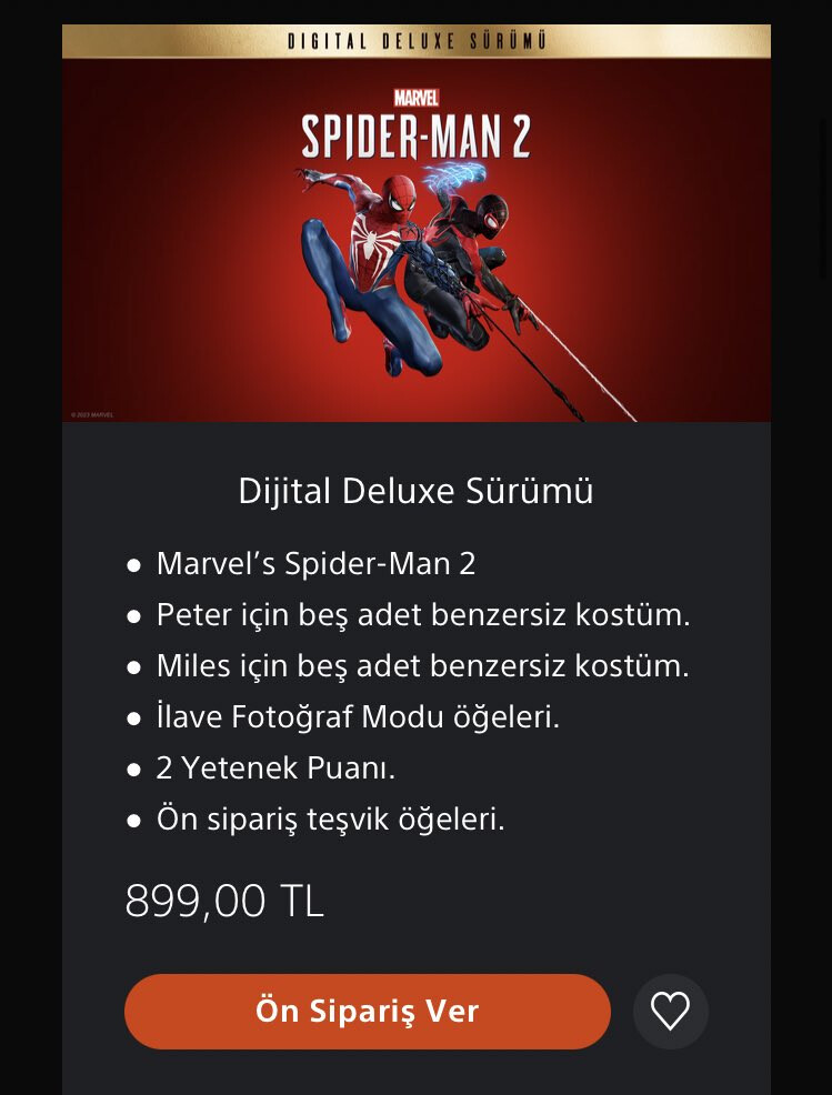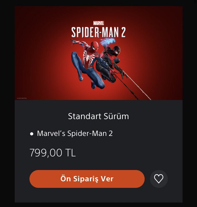 Marvel’s Spider-Man 2 fiyatı fena değilmiş. İlk oyunu PS4’de oynamıştım şehirde dolaşmak falan çok zevkliydi.