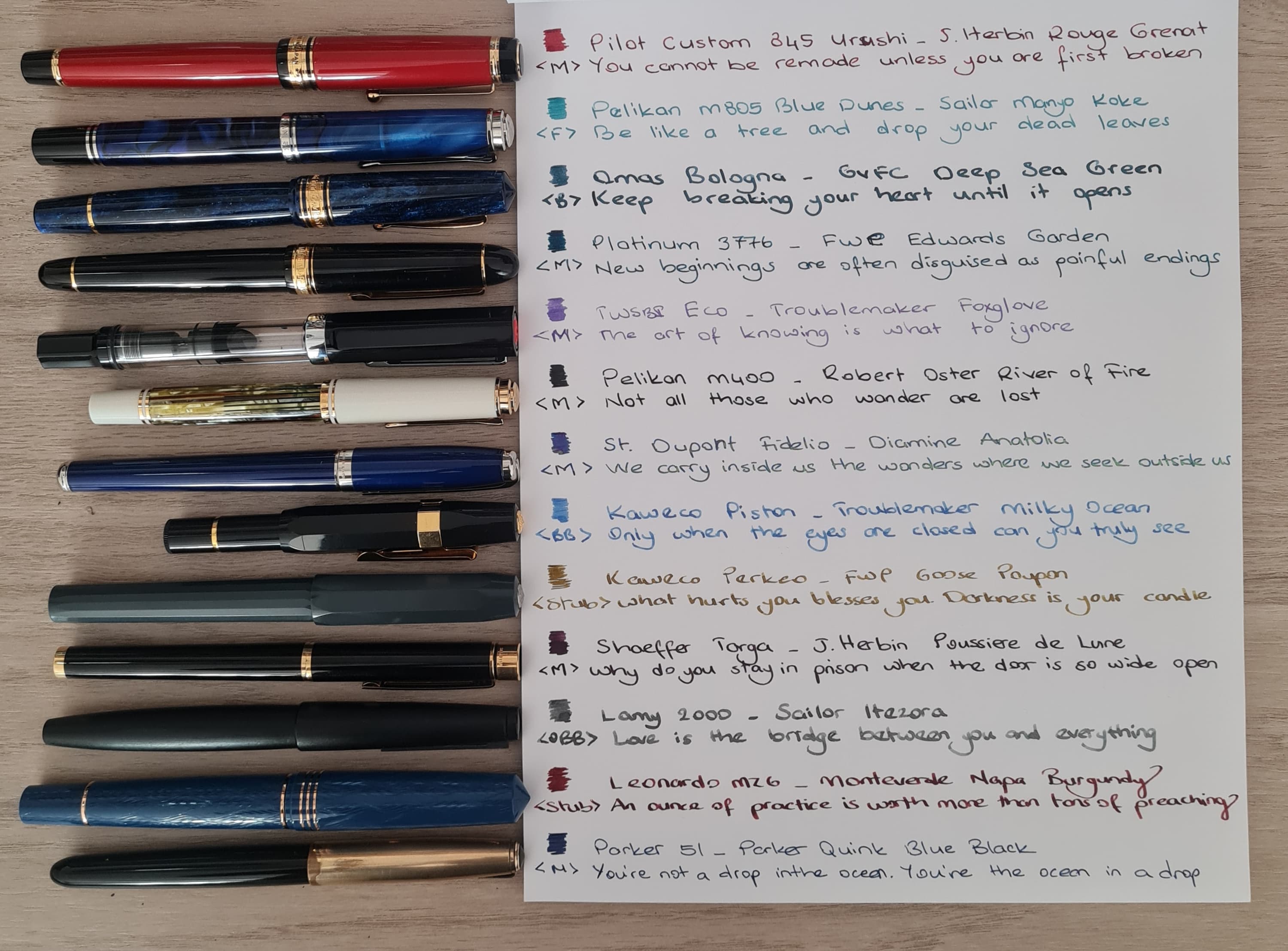 Bir de bazı kalemleri elden çıkarıcam. Bir sürü kalem de olsa dönüp dolaşıp aynı kalemleri kullandığımı fark ettim, o yüzden kalanları satıp toplamda 5’e kadar inmek istiyorum. Satılırsa tabii, ondan da emin değilim.