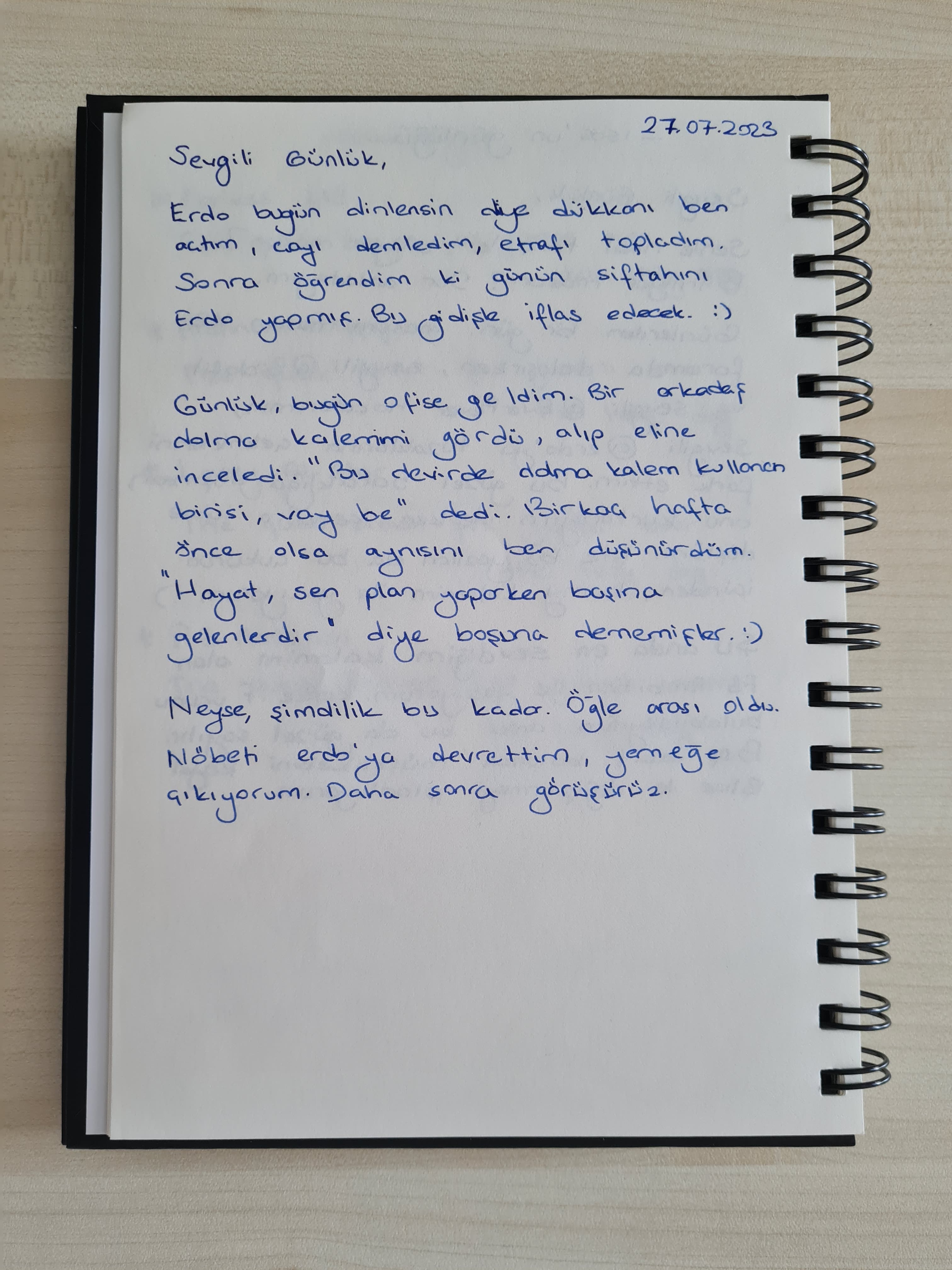 Başka kalemle dene. Muhtemelen farklı olacaktır çünkü 419 biraz ıslak yazıyor. Acele etme, F uçlu lamy’yle bir dene sonra.
