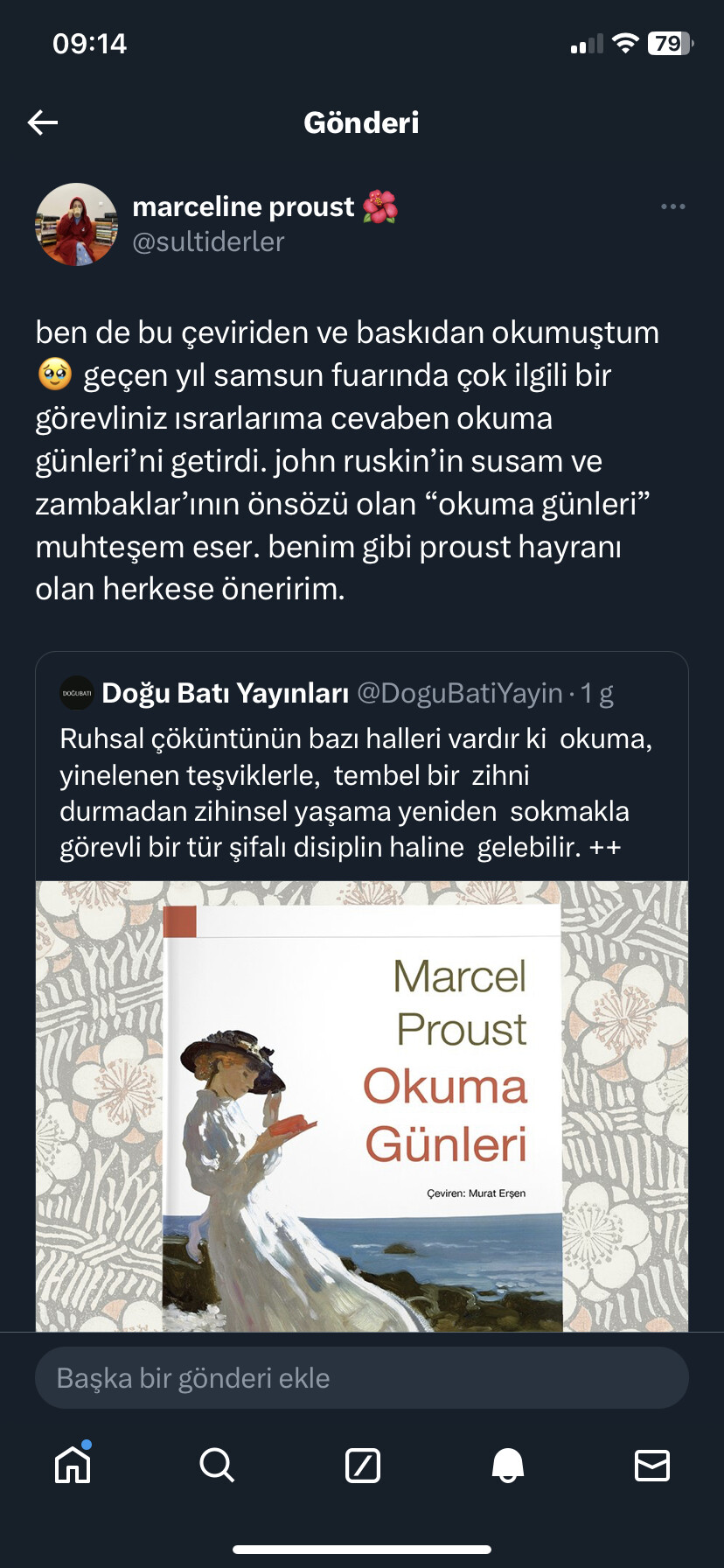 Proust okumaya Kayıp Zamanın İzinde ile başladım ben, iyi ki öyle yapmışım. Ama bu şekilde de başlanabilir tabii.